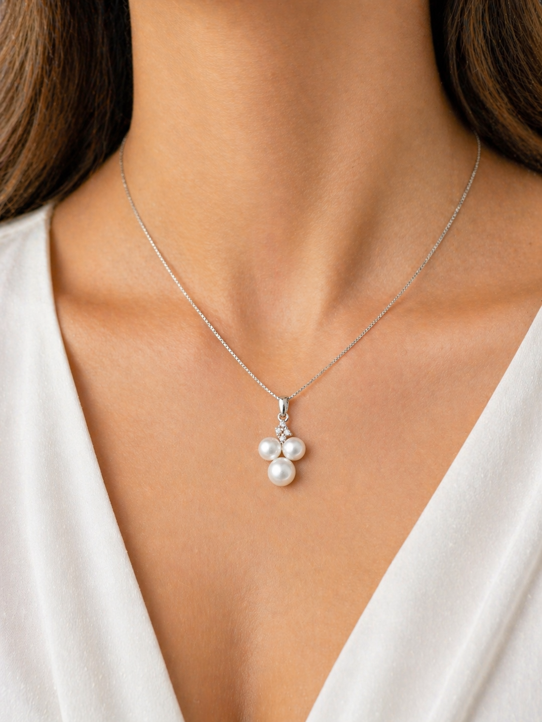 Diamanthalsband 18k Three Pearls 0.05ct