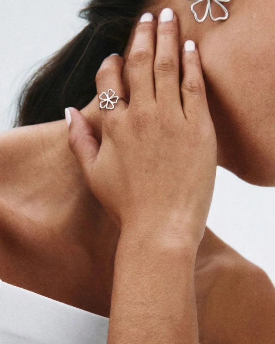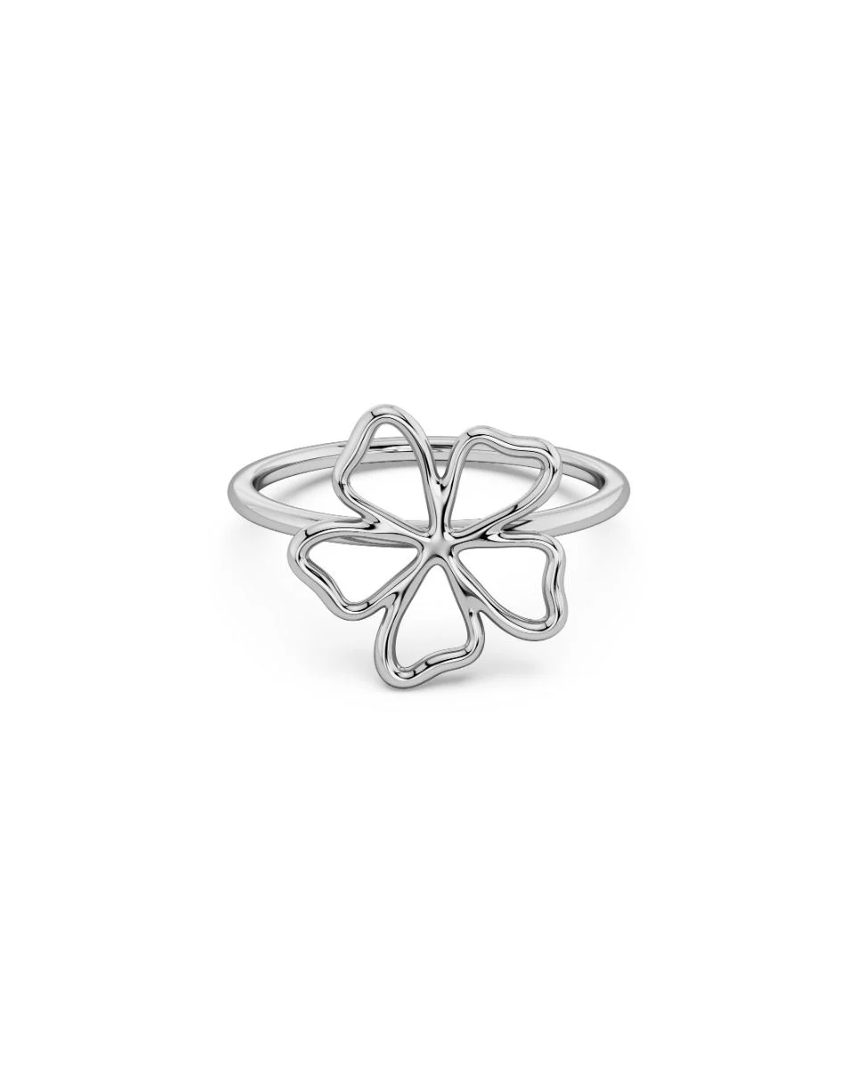 Stålring som har en vacker blomform fäst direkt på skenan. Fin att matcha med seriens studs, hoops eller nättare halsband.
