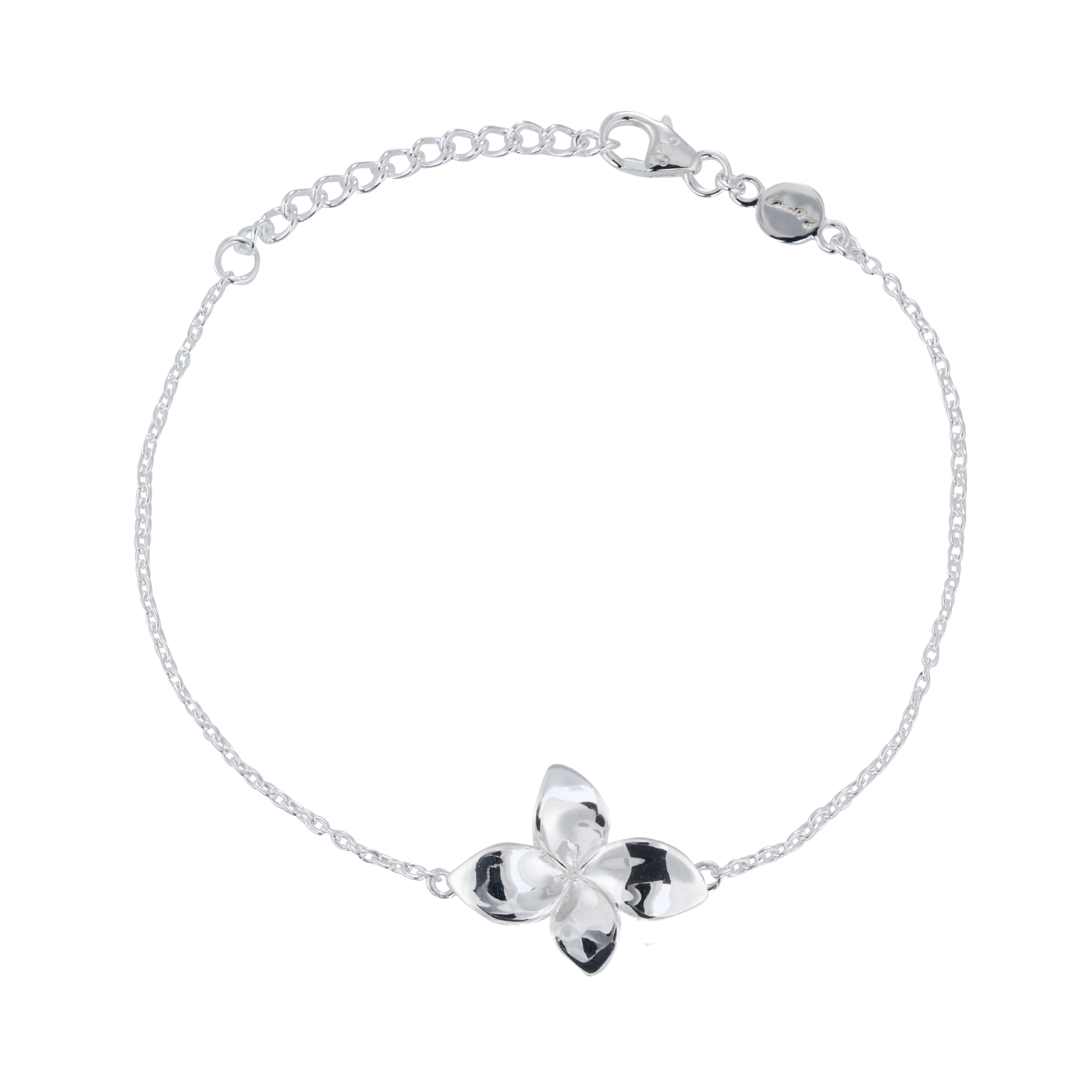 Stålring som har en vacker blomform fäst direkt på skenan. Fin att matcha med seriens studs, hoops eller nättare halsband.