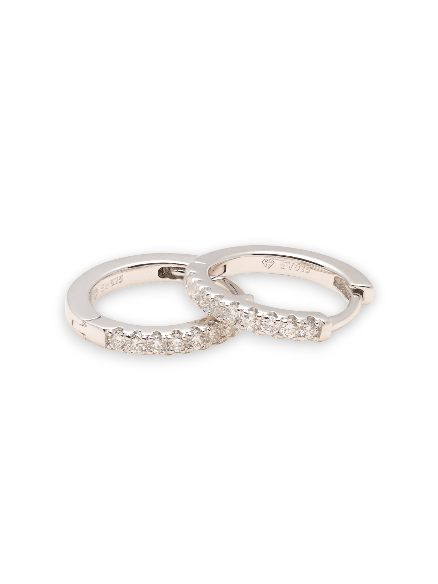 Ett par 925 Sterling Silvercreoler med totalt 0.18ct labbodlade runda diamanter. Nätta och sofistikerade studs som passar alla tillfällen!