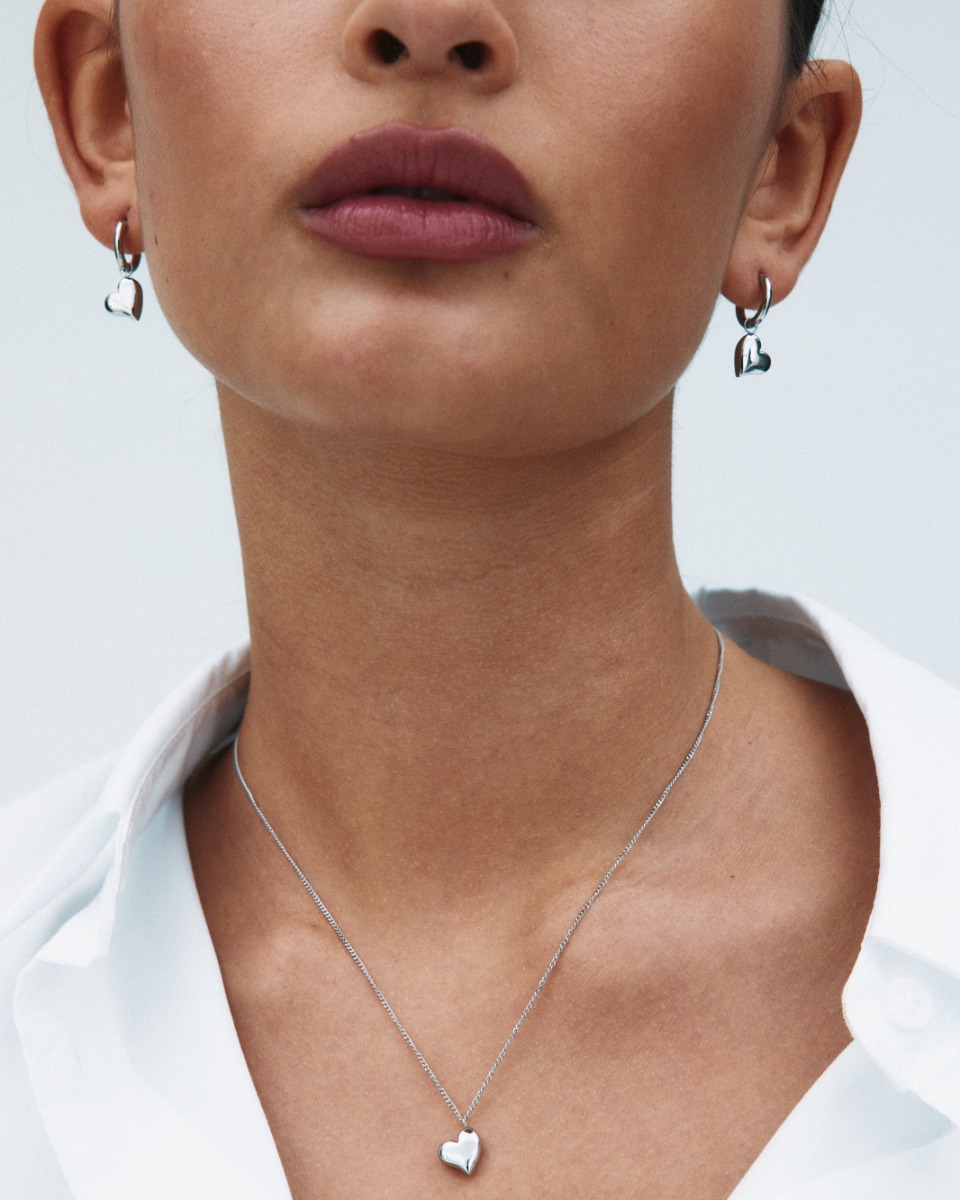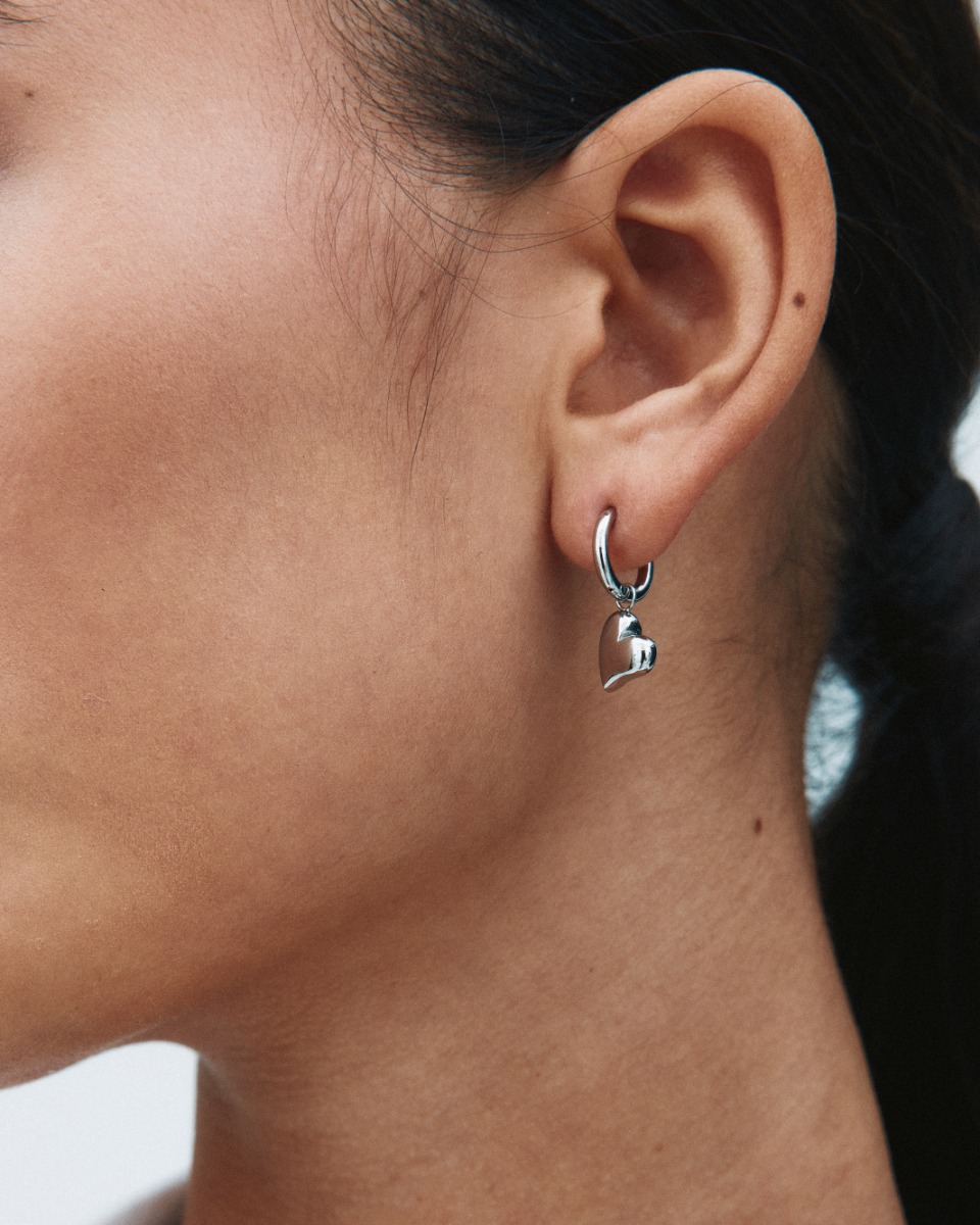 Amorina hjärtformade hoops i stål med avtagbar hjärtcharm för att skapa två örhängen i ett.