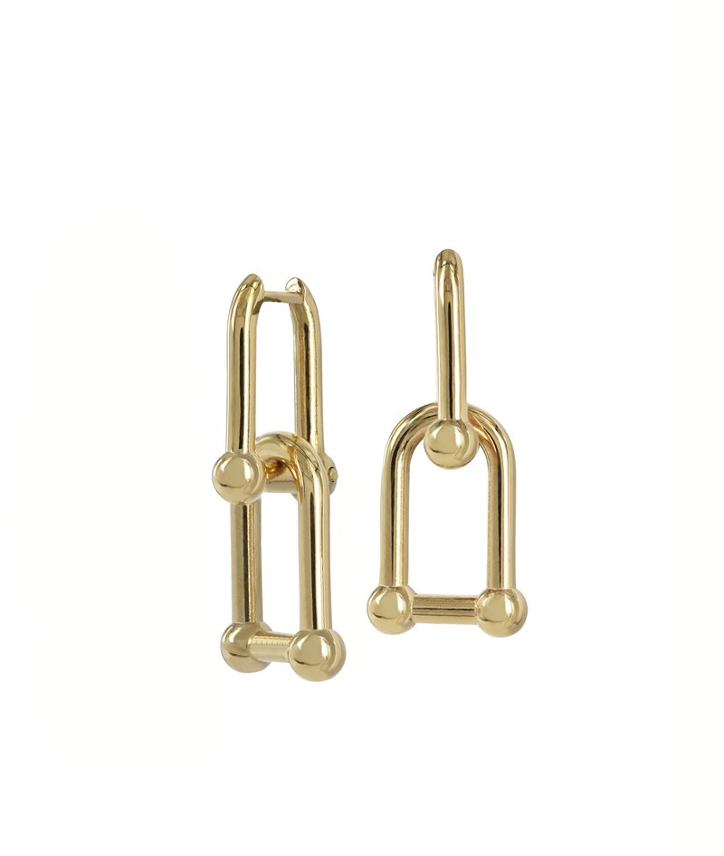 Amy, coola guldpläterade stålörhängen av 2 st länkade bitar med oval form och kulor.