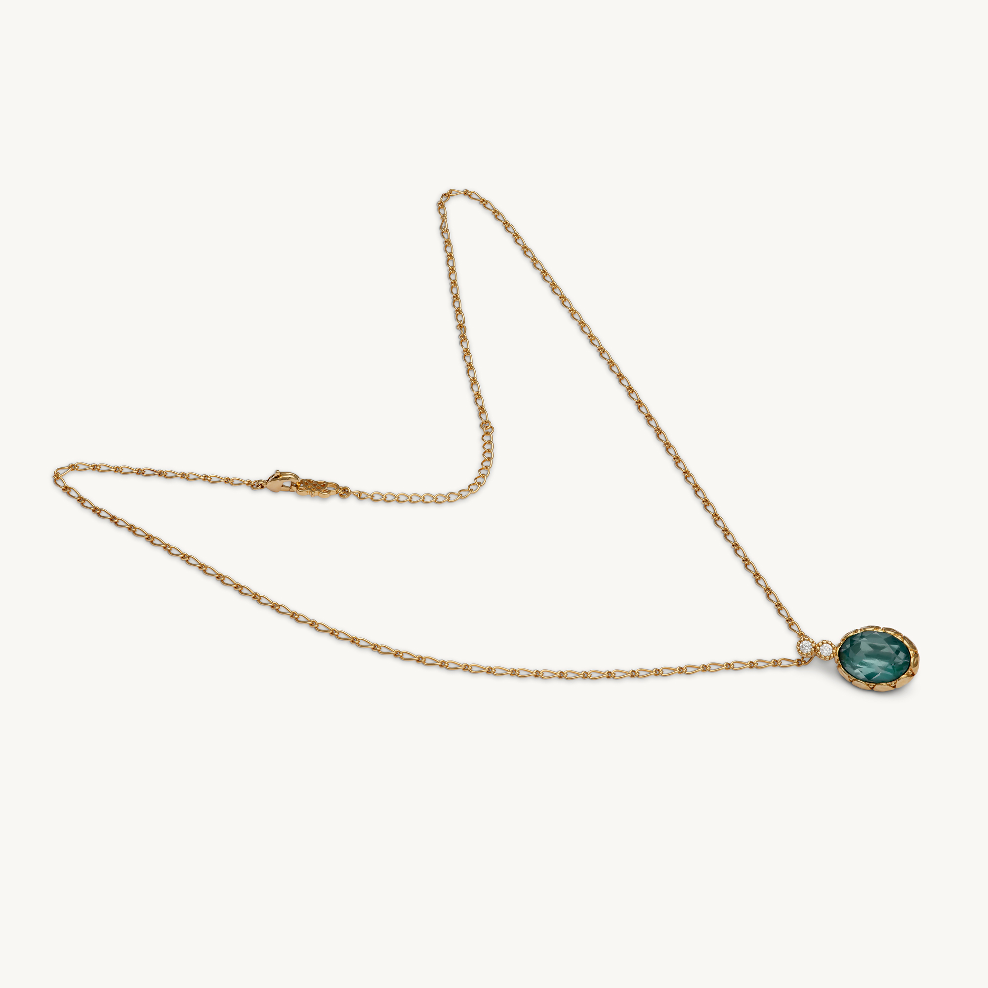 Audrey, vackert guldpläterat mässinghalsband med en kristall i grön färg.