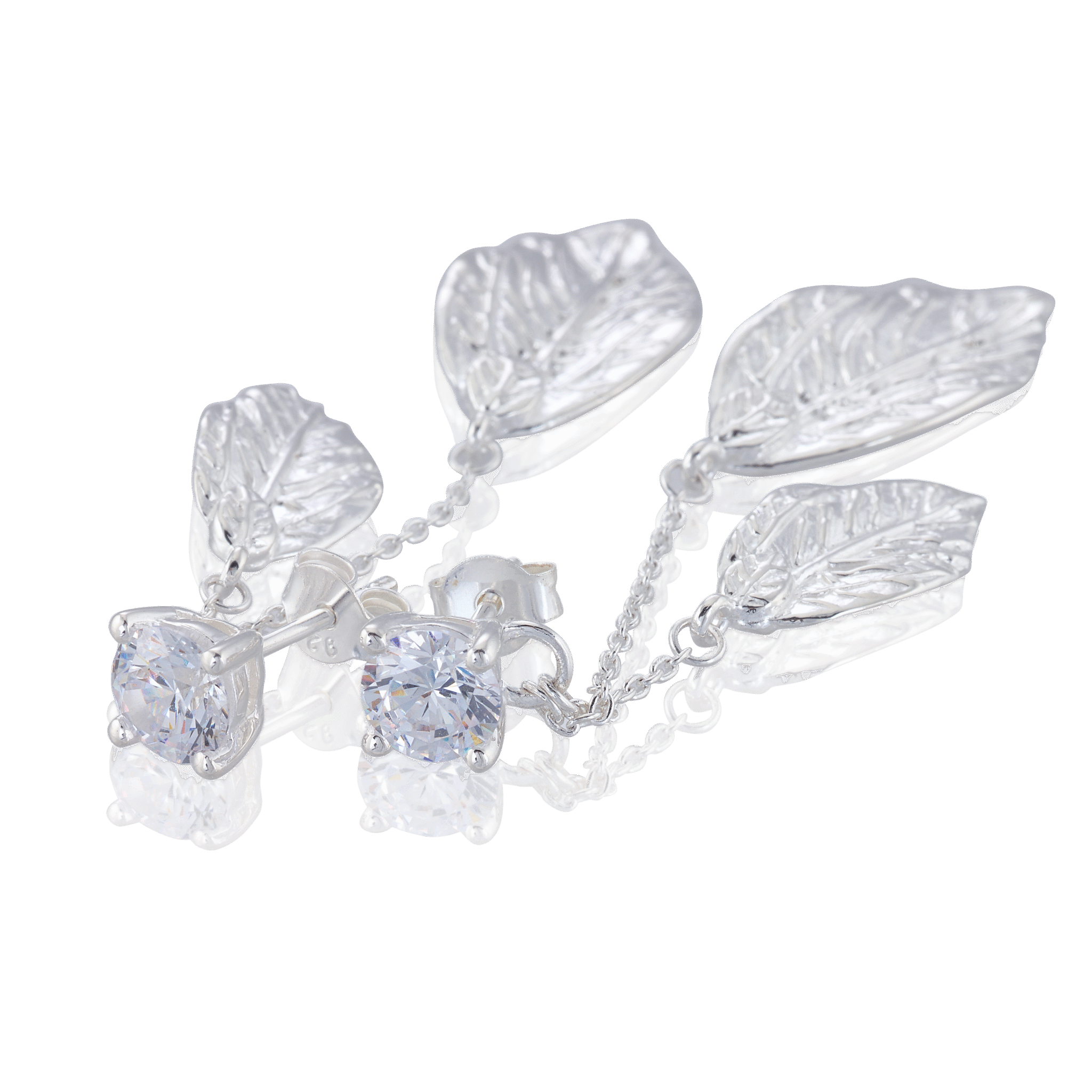 Silverörhänge med vackra höstlöv och en lite större cubic zirconia sten. Missa inte matchande halsband och ring i samma kollektion.