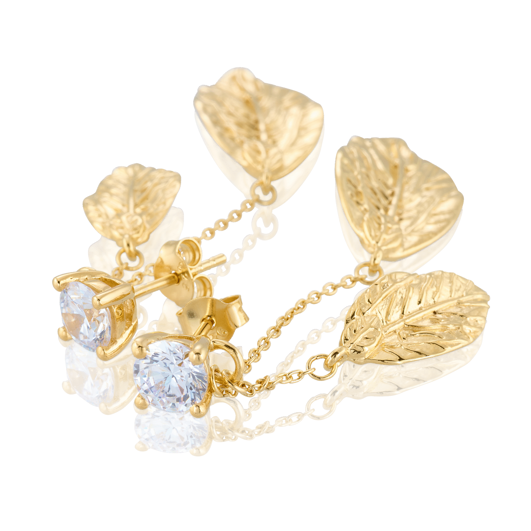 24k guldpläterade silverörhängen med vackra höstlöv och en lite större cubic zirconia sten. Missa inte matchande halsband och ring i samma kollektion.