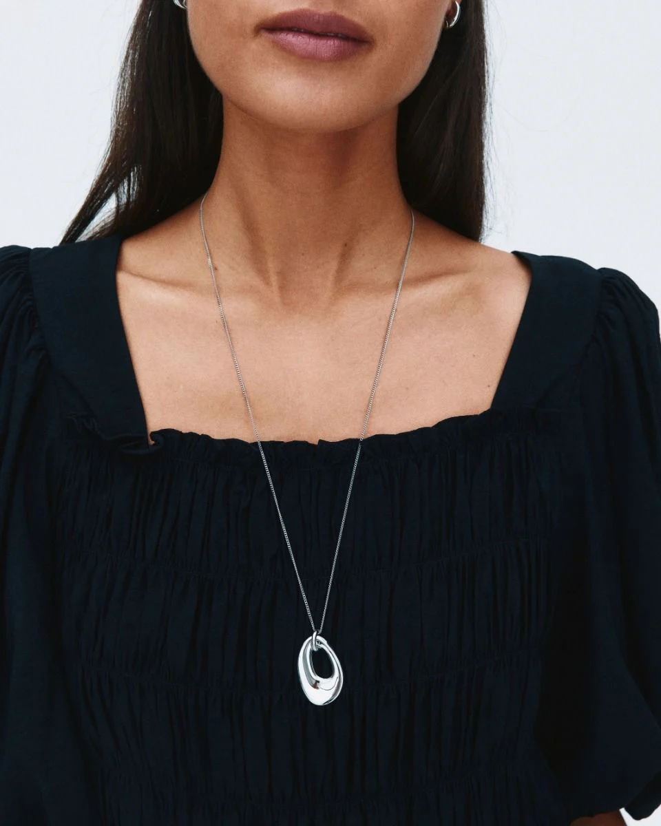 Här i ett längre halsband med en fasettslipad ankarkedja som skrider genom hängets vackra organiska form. Matcha gärna med seriens örhängen, armband eller ring.