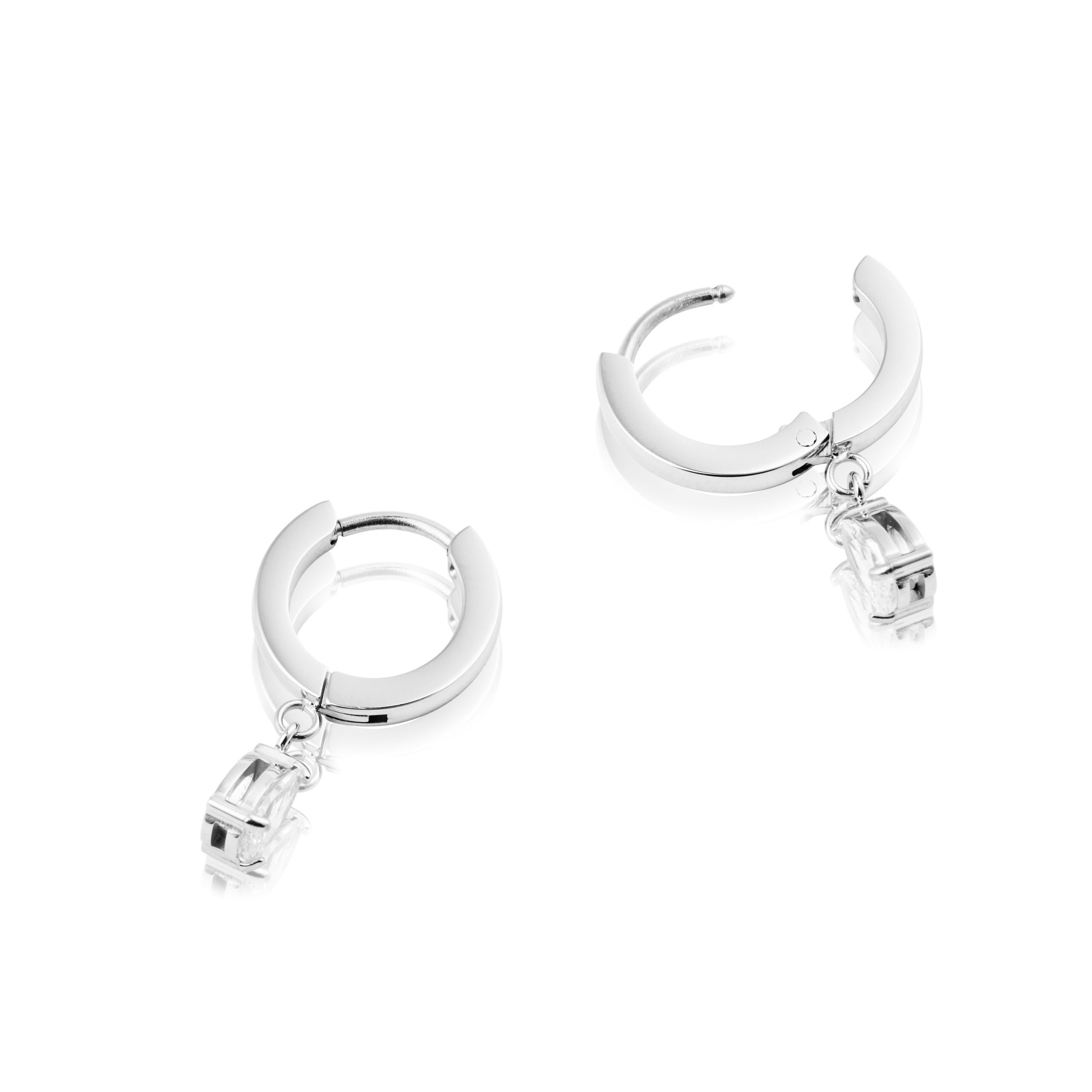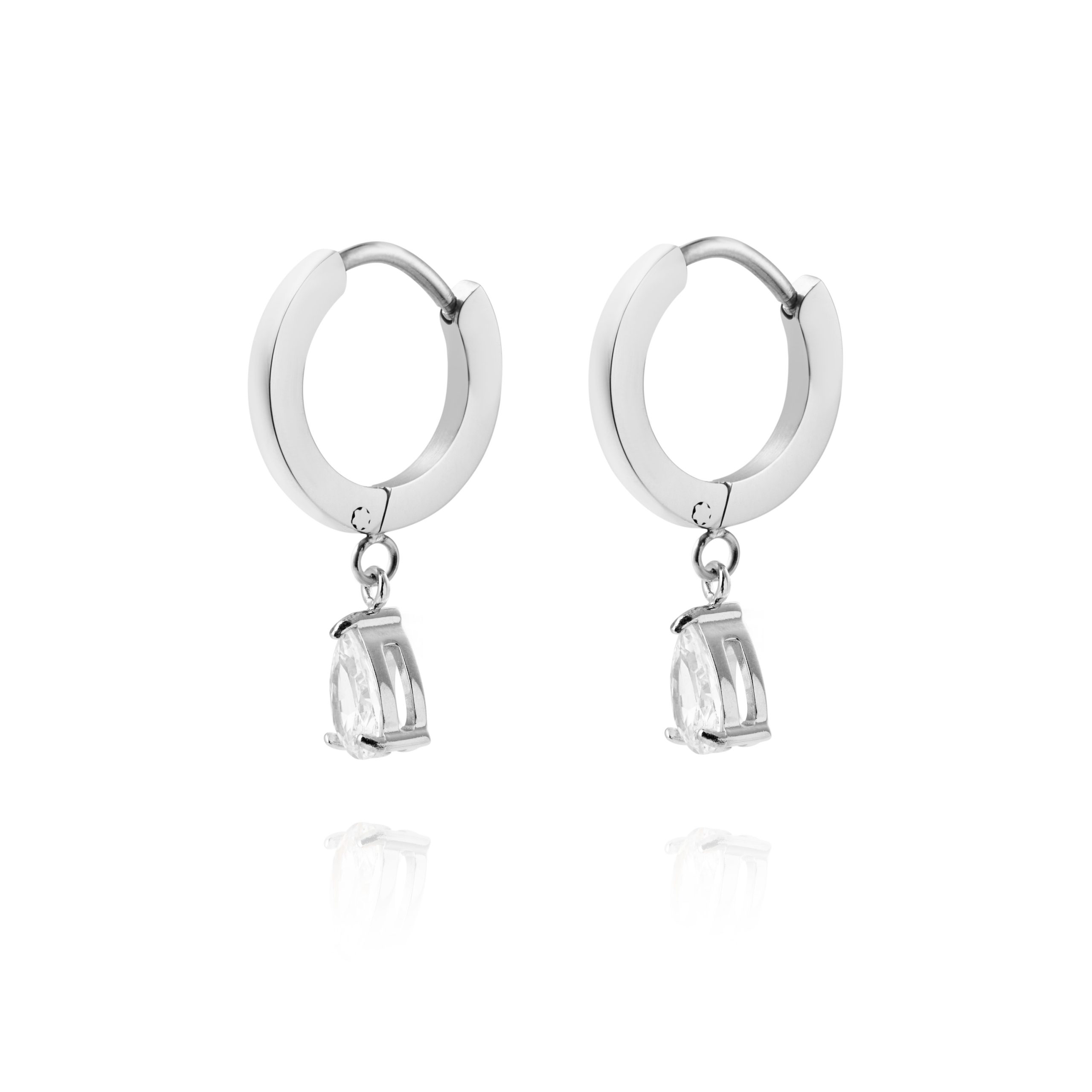 Dessa stilrena örhängen i hållbart stål kombinerar enkelhet och elegans. Prydda med vita stenar och tidlösa ramar passar de alla tillfällen. Vattentåliga och slitstarka – perfekta att bära varje dag.