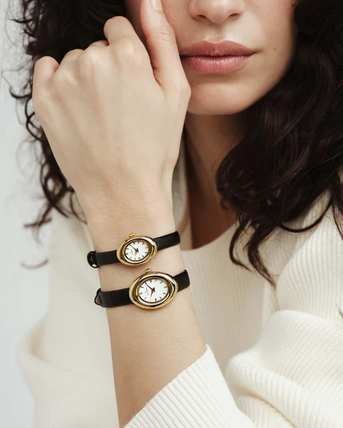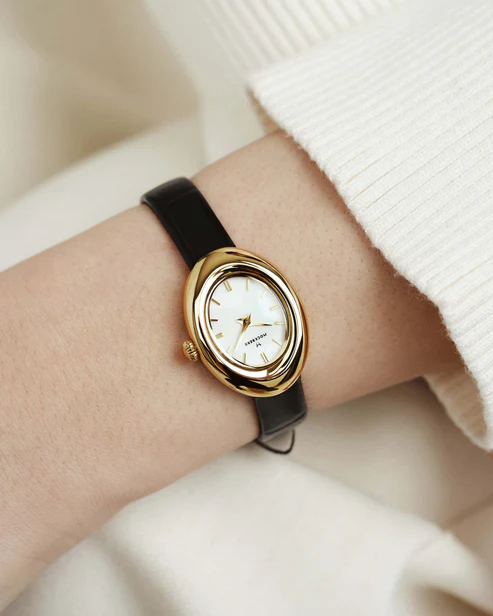 Belle Oval Leather Watch har samma eleganta design som Belle Oval Watch men med ett stilrent svart läderarmband. Den mjukt rundade ovala boetten kombineras med klassiskt läder för en tidlös look.