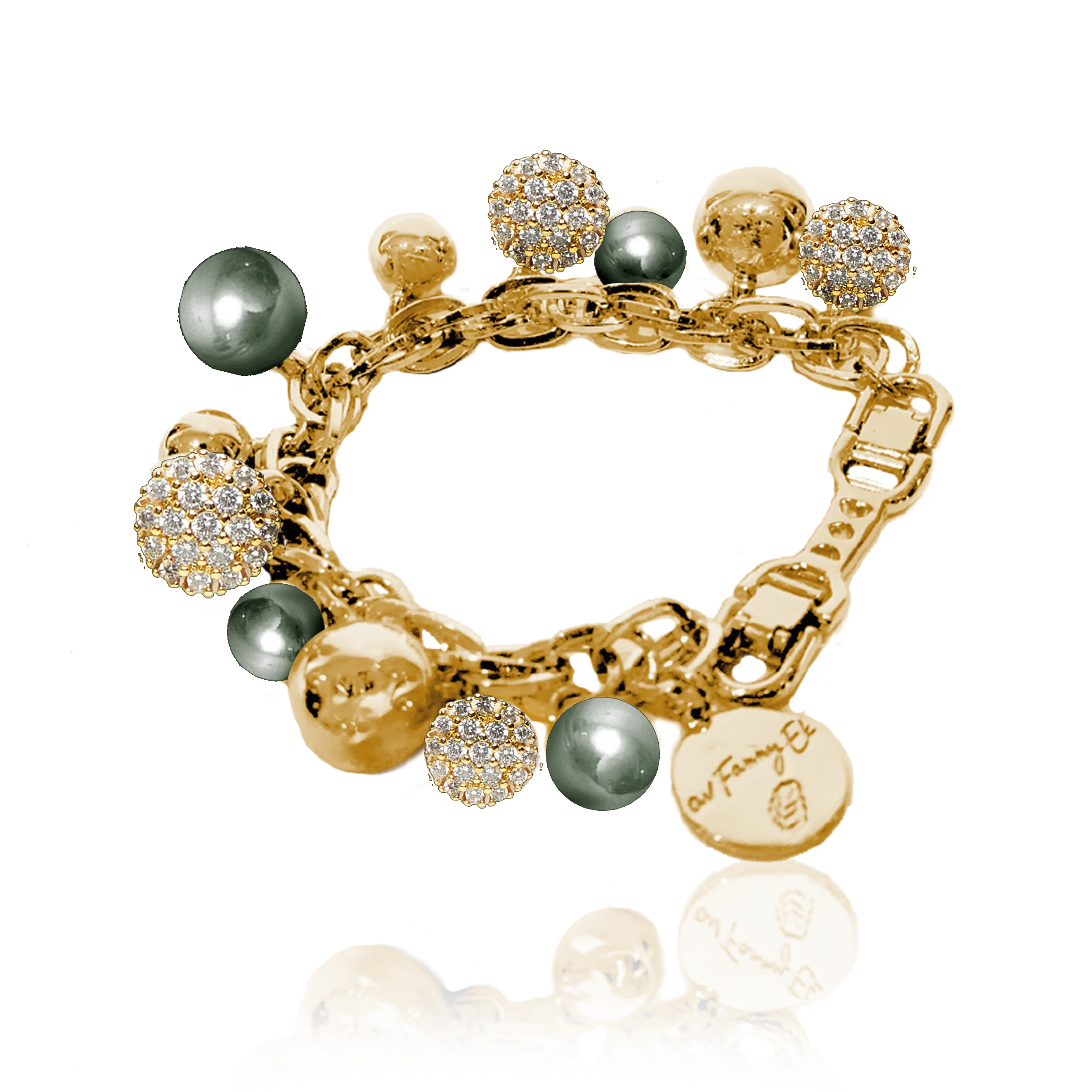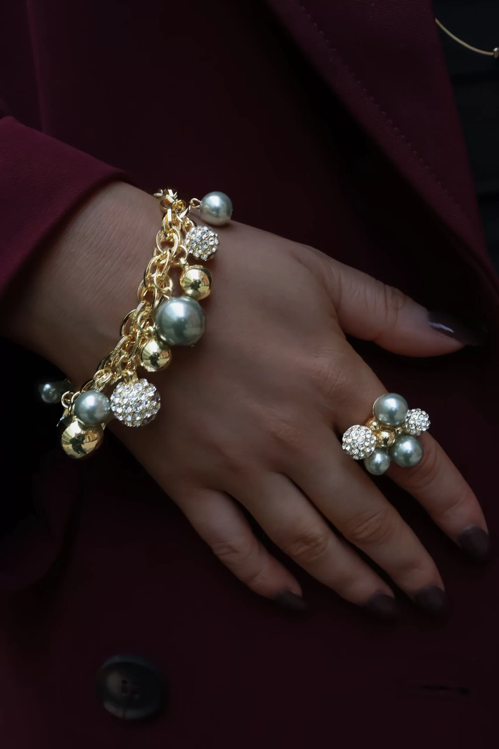 IOAKU - Mässingsarmband Berry Pearl Sparkle Crystal Night Green