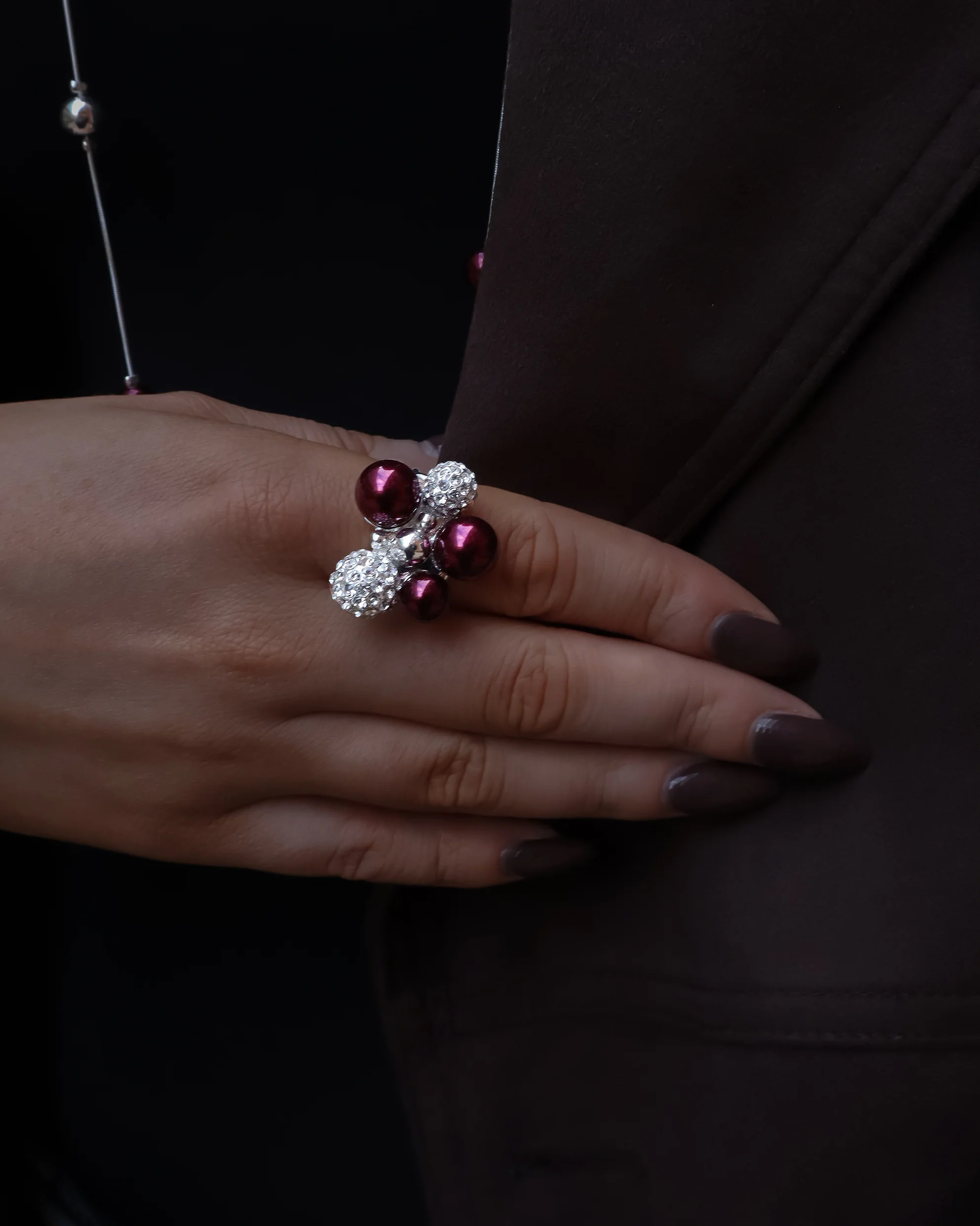 Möt din nya favoritaccessoar: BERRY PEARL SPARKLE MAXI Ring som förenar en klassisk pärlestetik med modern, glittrande kristaller. Den är helt justerbar och sitter bekvämt oavsett fingerstorlek. Designad för att sticka ut med sin iögonfallande och glamorösa look. Detta är lyx i ett enda smycke, som funkar lika bra till vardags som till fest.