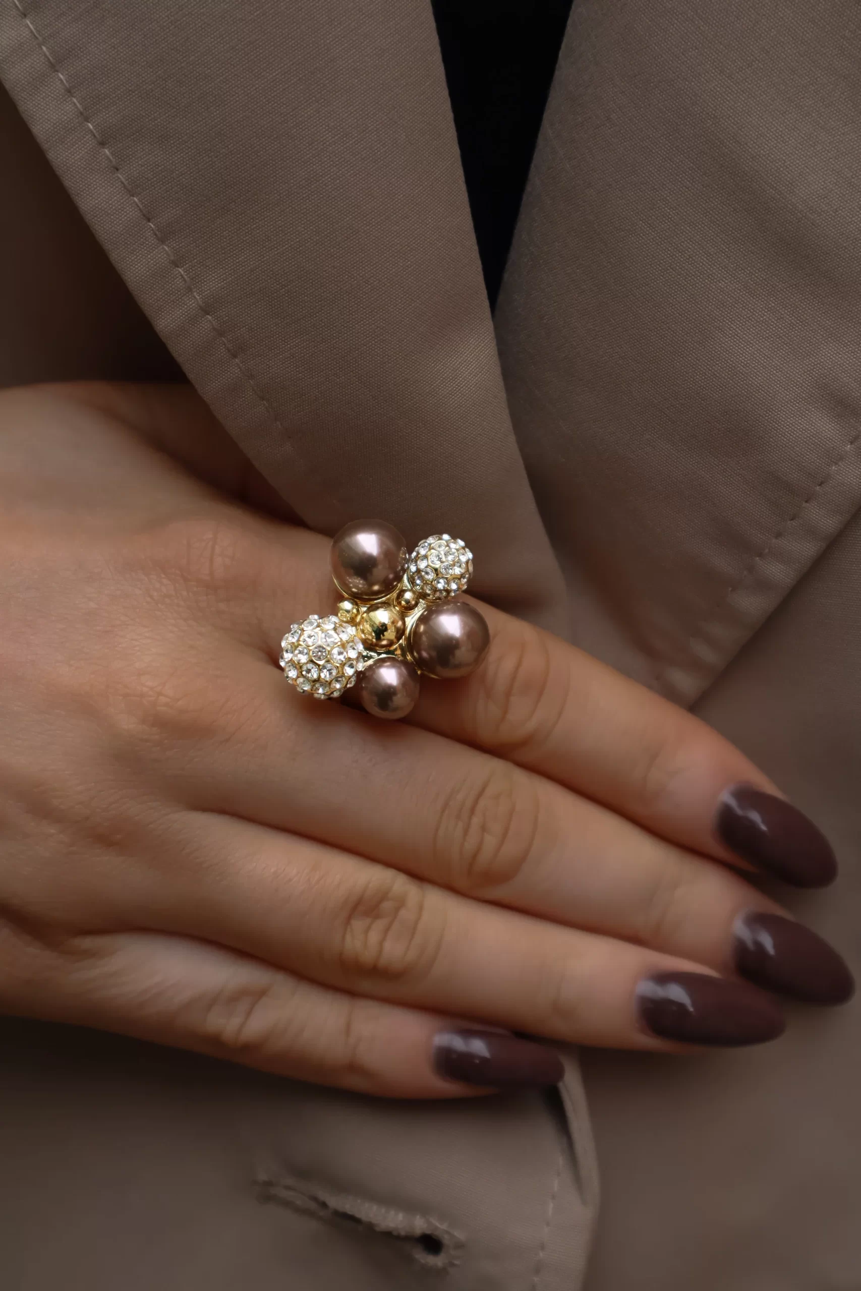 Möt din nya favoritaccessoar: BERRY PEARL SPARKLE MAXI Ring som förenar en klassisk pärlestetik med modern, glittrande kristaller. Den är helt justerbar och sitter bekvämt oavsett fingerstorlek. Designad för att sticka ut med sin iögonfallande och glamorösa look. Detta är lyx i ett enda smycke, som funkar lika bra till vardags som till fest.