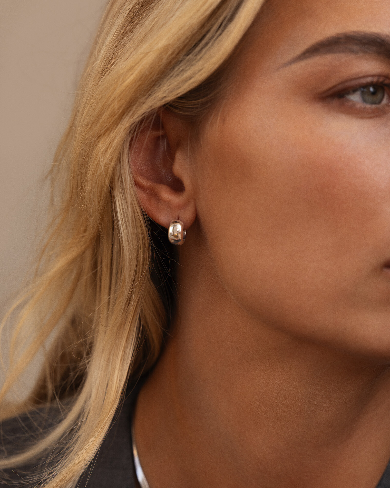 Brave Steel Mini Hoops har en mjukt välvd, kompakt design som ligger nära örat. Tillverkade i rostfritt stål med silverfärgad finish ger de ett rent uttryck som fungerar från vardag till kväll. Den polerade ytan ger fin lyster och tål vardagligt slitage. Bär dem solo för en avskalad look eller kombinera med mindre studs för en personlig stil.