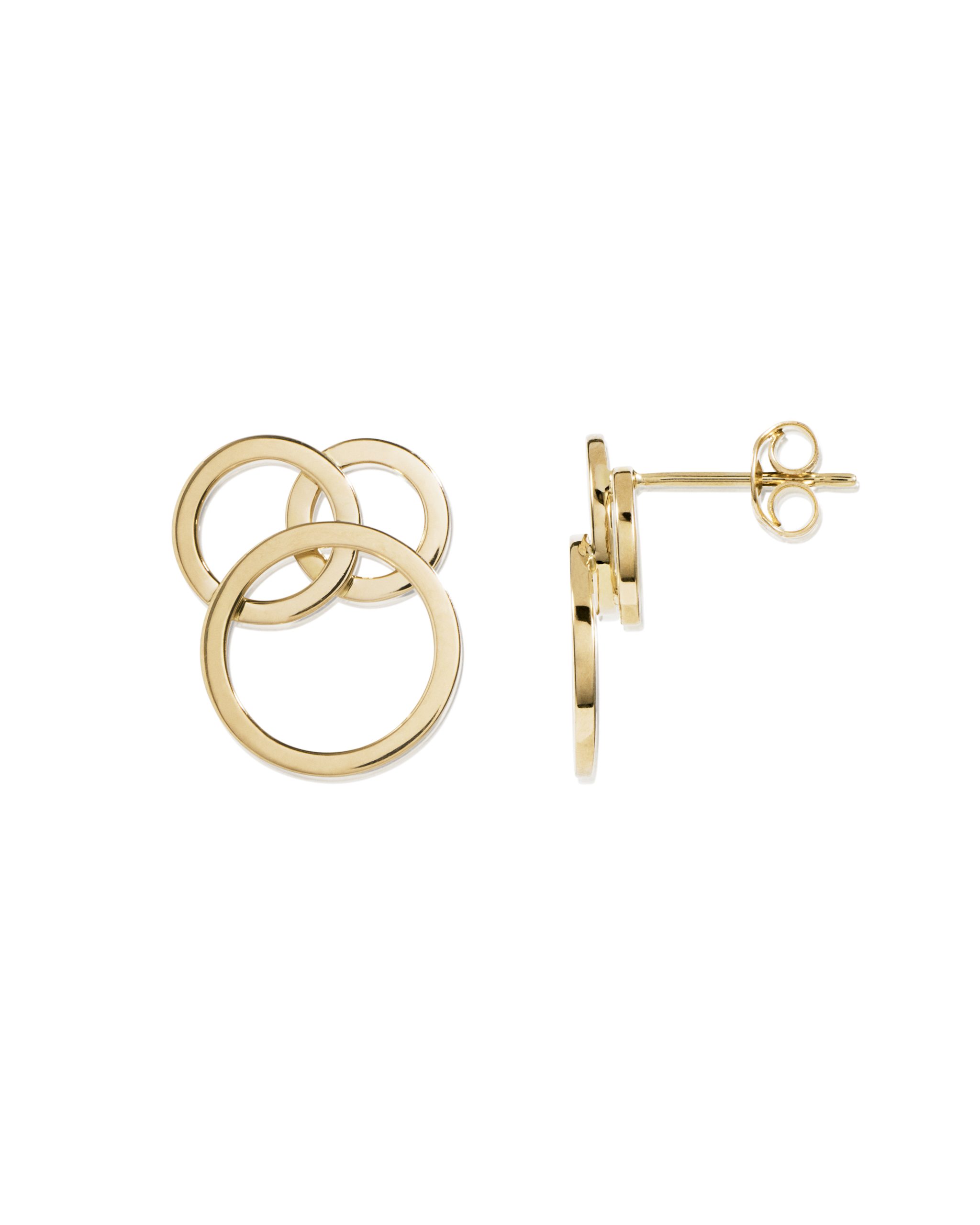 Örhängen i återvunnet 18k guld med tre ringar fästa vid varandra i formen av bubblor.
