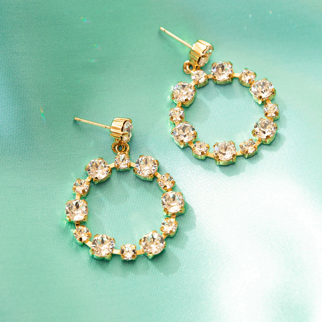 Vår bästsäljare Calanthe guldpläterade mässingörhängen med klara kristaller.