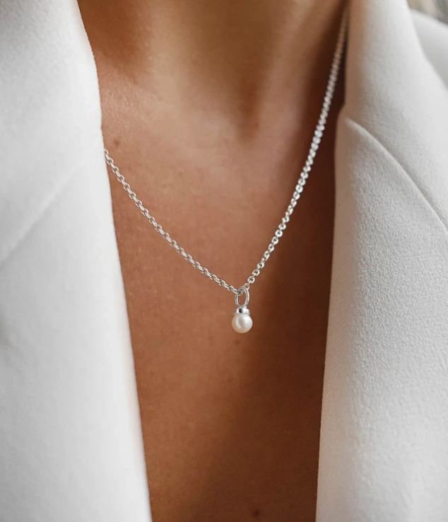 Petite Pearl, tidlös och sofistikerad silverberlock prydd med en strålande vit sötvattenspärla.