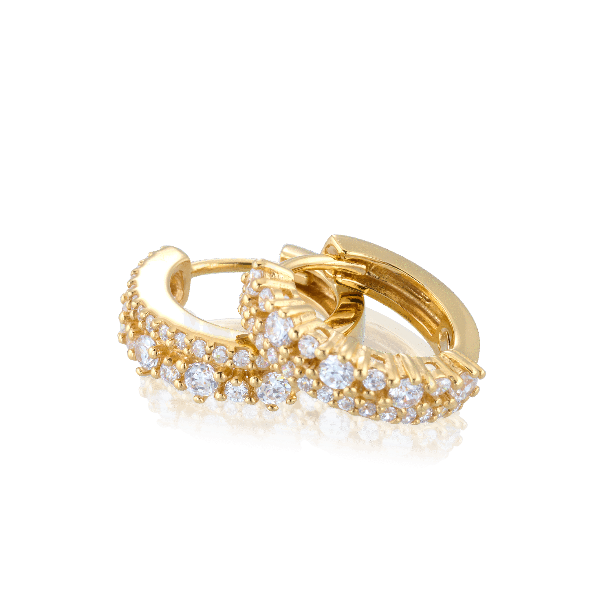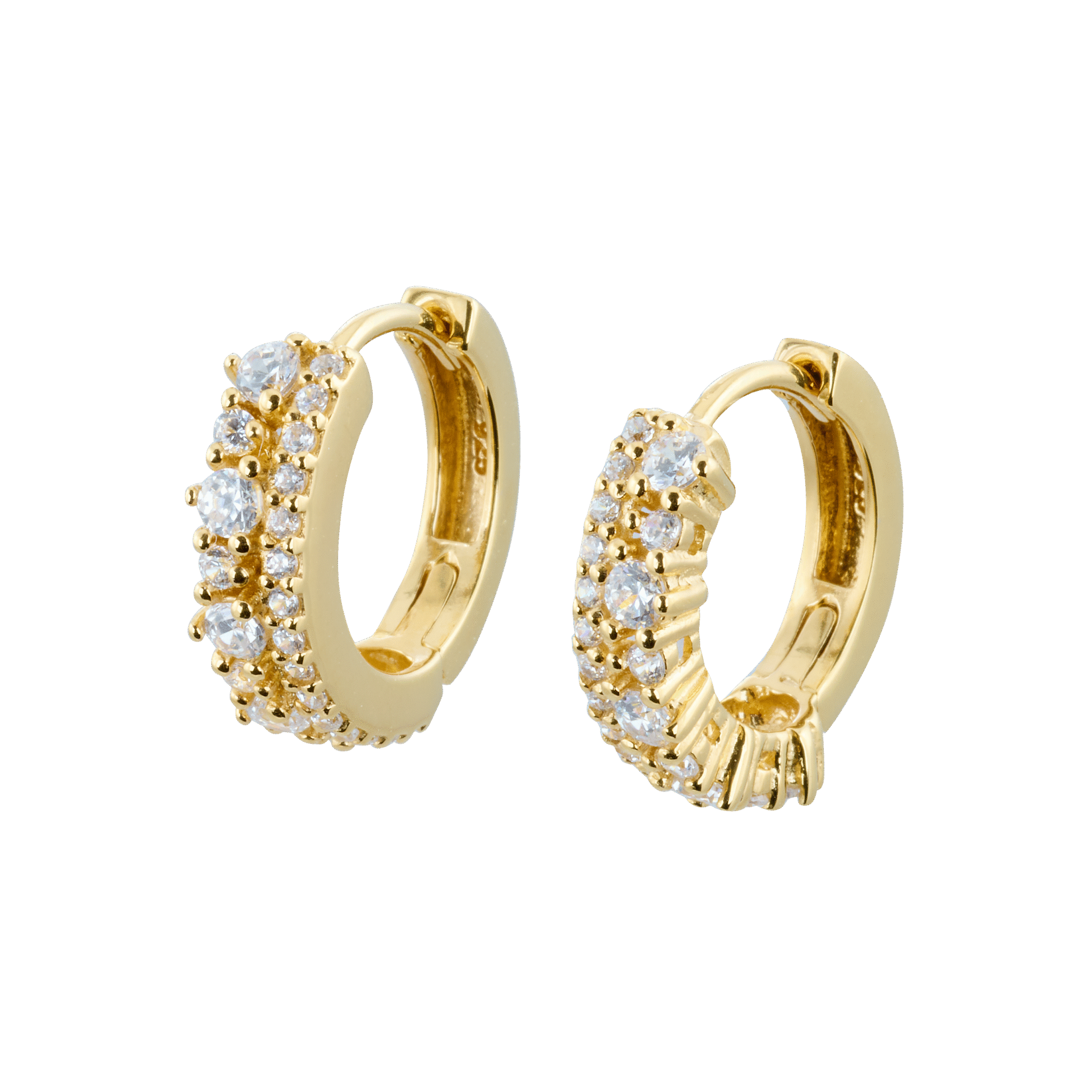 Vackra 24k guldpläterade silverörhängen med en glittrig upphöjning av cubic zirconia i olika storlekar som ger intrycket av en liten prinsesskrona. Missa inte matchande halsband och ring i samma kollektion.