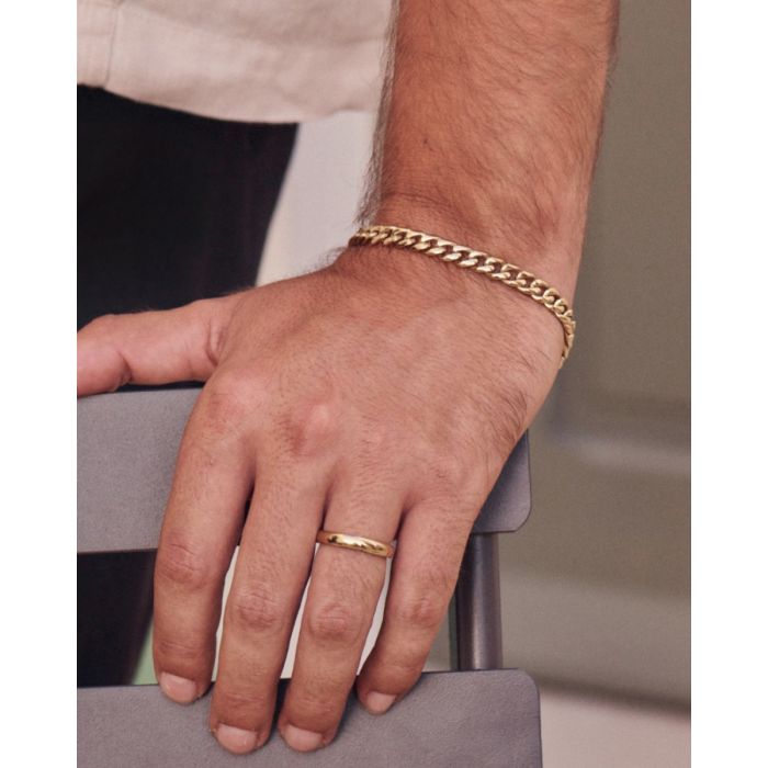 Clark chain är en klassisk lite bredare pansarlänk som du gärna bär alla dagar i veckan. Clark armband har ett snyggt lås som smälter fint ihop med länken och ses här i blank 14K guldplätering. Bär gärna armbandet tillsammans med andra herrarmband från Edblad.