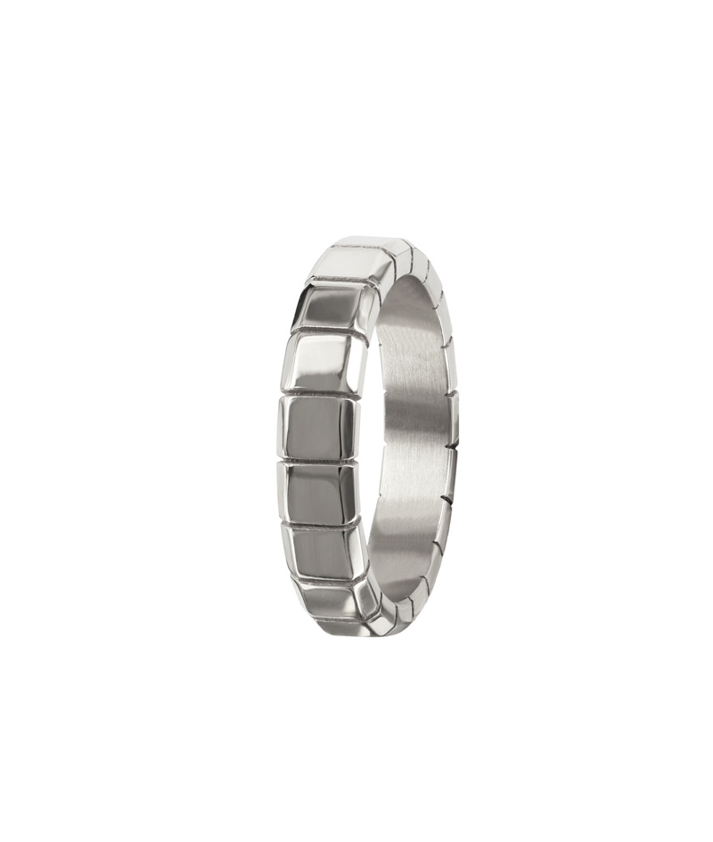 Cube ring tillverkad av kirurgiskt rostfritt stål med polerad finish.