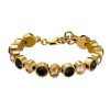 ELAINE – en ny variant av Dyrberg/Kerns fantastiska kristallarmband som lyser upp vilken outfit som helst. Designat i polerat stål med guldtonad IP plätering och vackra svarta och gyllende kristaller.