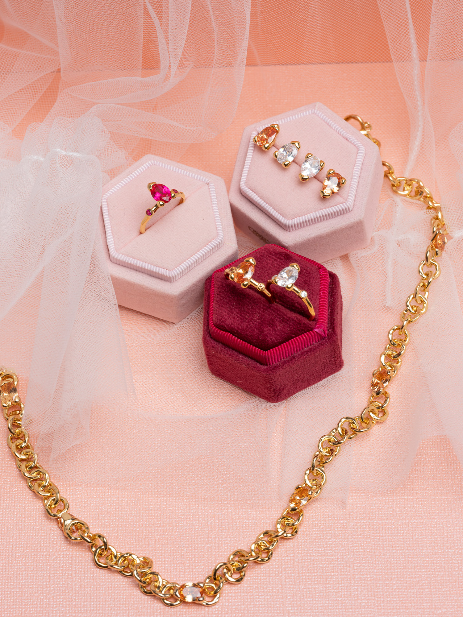 När vår värld blivit långsam och tråkig efter successiva nedstängningar fann Therese sig själv återupplivad av Londons livfulla puls under en vistelse i sitt lummiga hem i Wimbledon Village. Med varje slag av Londons rika kulturella hjärta överflödade Therese's sinne av idéer. YLVA LI omfamnar en förfinad look; en tydlig avvikelse från Therese's tidigare smyckesmärke, Lily and Rose, med dess romantiska, kostymsmycken. I hjärtat av YLVA LI's stil ligger en känsla av enkelhet och sofistikering, inspirerad av de rena linjerna och geometriska mönstren från Art Deco-rörelsen.