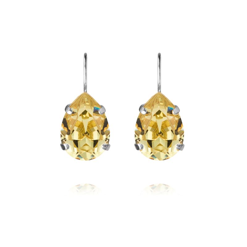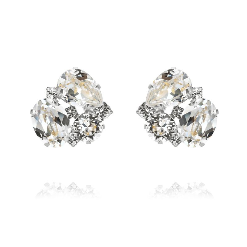 En mindre version av vårens signaturörhänge, Embla-löv. Handgjorda texturerade löv med 3 klara kristaller på varje örhänge.