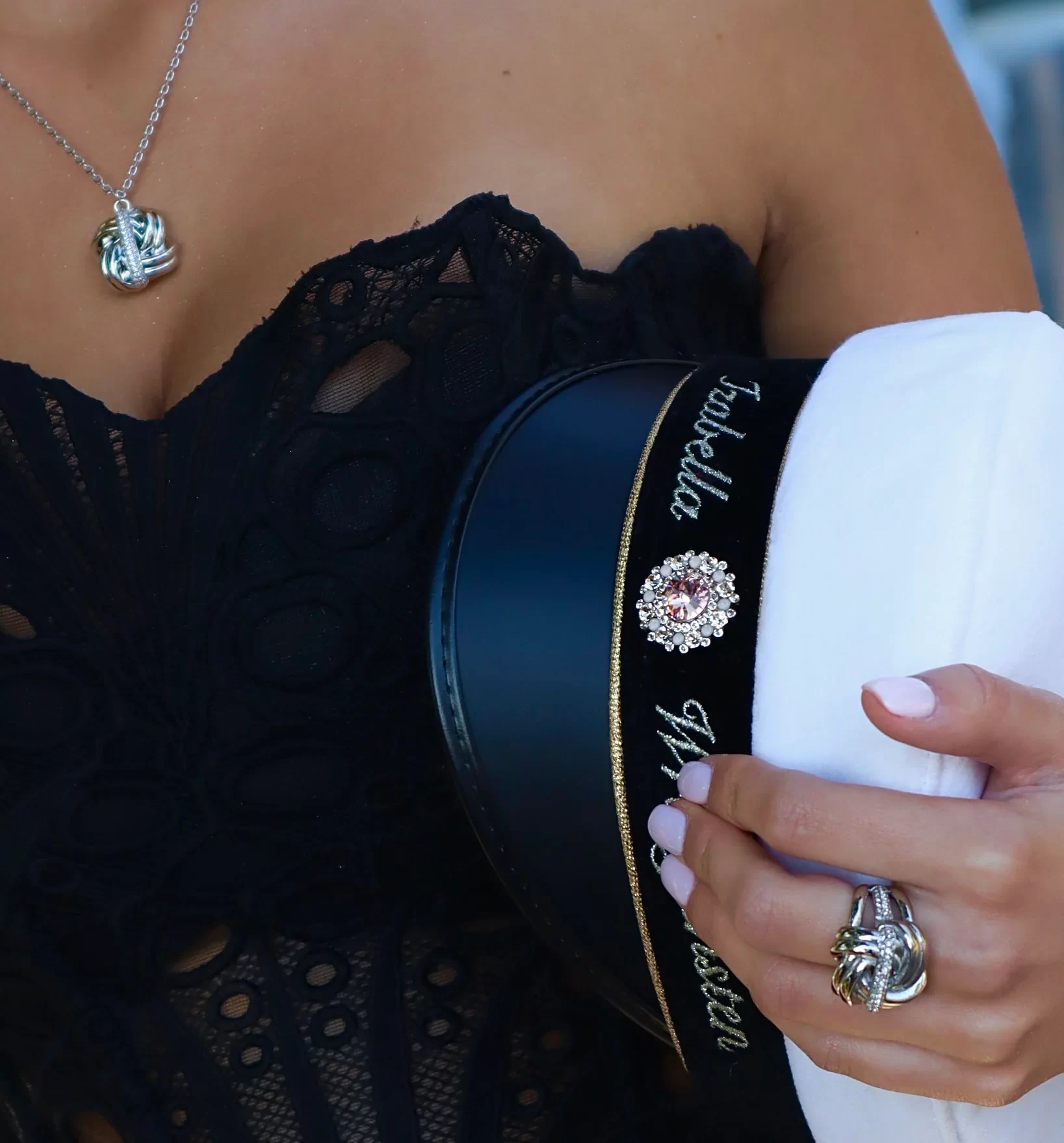 ENTWINE RING är ett kraftfullt och elegant smycke med en dubbellagrad knutdesign och en glittrande kristallrad i mitten. Ringen symboliserar samhörighet, styrka och balans, och finns i två storlekar (US 7 & 8). Pläterad i guld eller silver – perfekt som statementring eller vardagsfavorit.