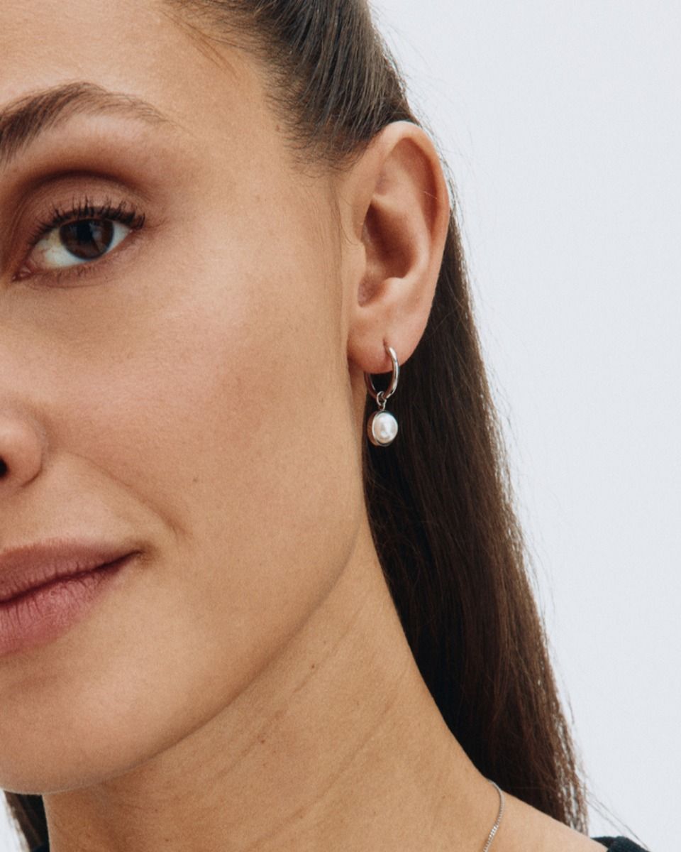 Gabrielle, stålörhängen kombinerar kedjor och pärlor för en modern, polerad look. I de mindre hoopsen hänger den mjuka pärlemorpärlan vackert i en stram skena som är avtagbar för att skapa två örhängen i ett. Snygga att matcha med seriens fina armband, halsband eller klassiska ring.