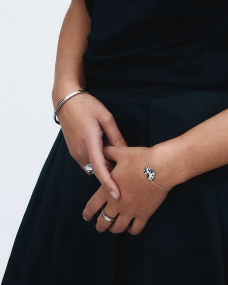 På seriens armband sitter den vackra stiliserade blombladsformen fäst mitt på kedjan. Modernt, stilrent och snyggt att kombinera med andra armbandsfavoriter, och gärna tillsammans med någon av seriens övriga delar.
