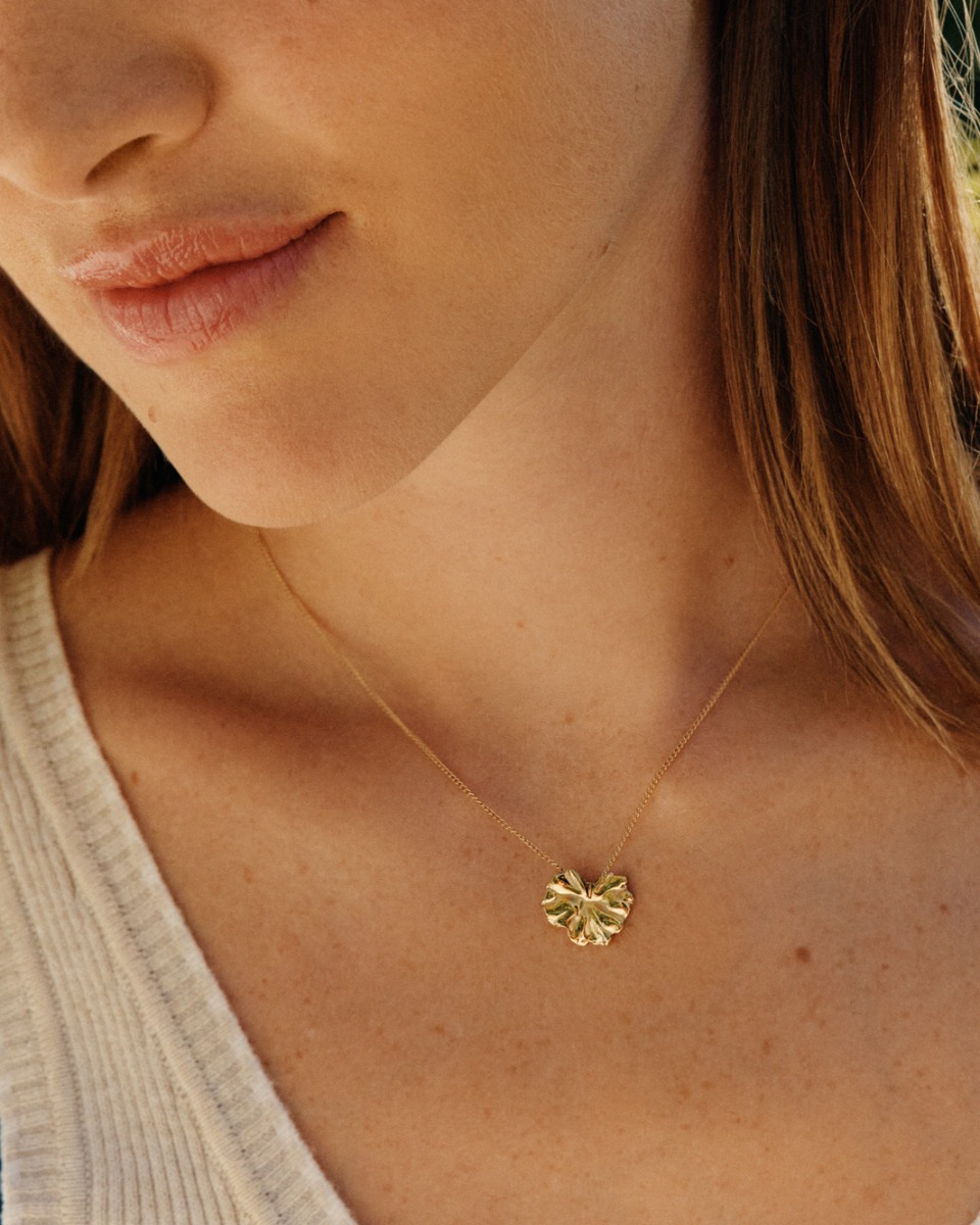 Gerana halsband vackert stort böljande blomblad i guldpläterat stål.
