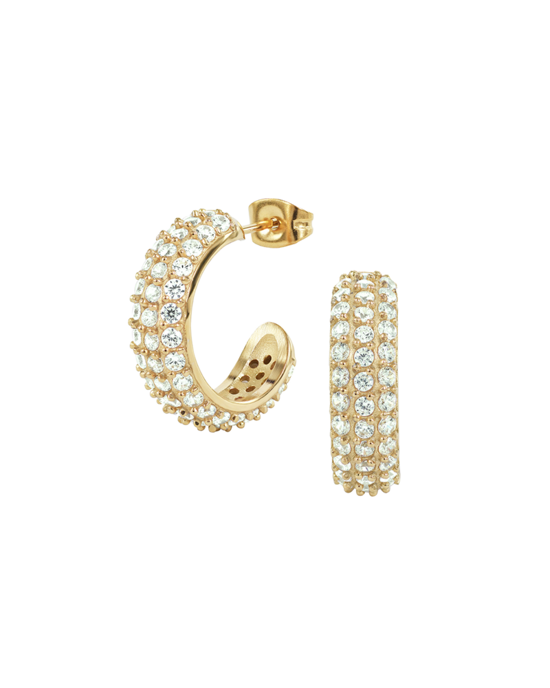 Harper är klassiska guldpläterade creoler i stål med kloinfattade zirkoner.
