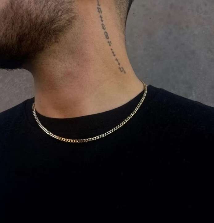 Ett stålhalsband med pansarlänk med PVD-plätering i guld som ligger mjukt och följsamt mot huden match vare dess design.