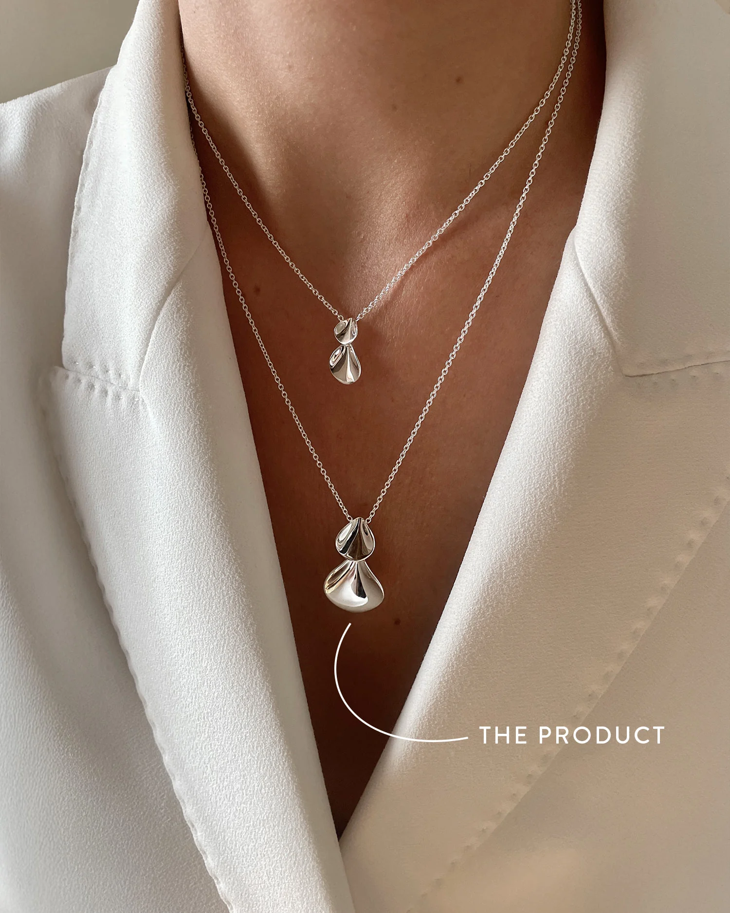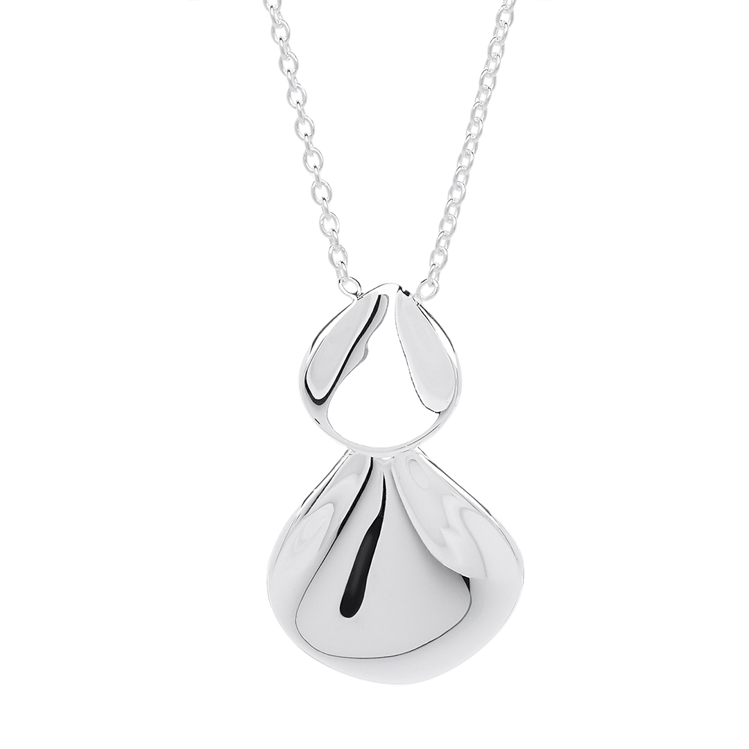 Ett vackert silverhalsband i polerat silver. Har två hängen, ett mindre och ett större som överlappar varandra, inspirerade av blomblad. Ett elegant och feminint smycke.