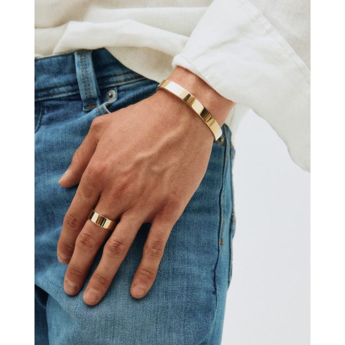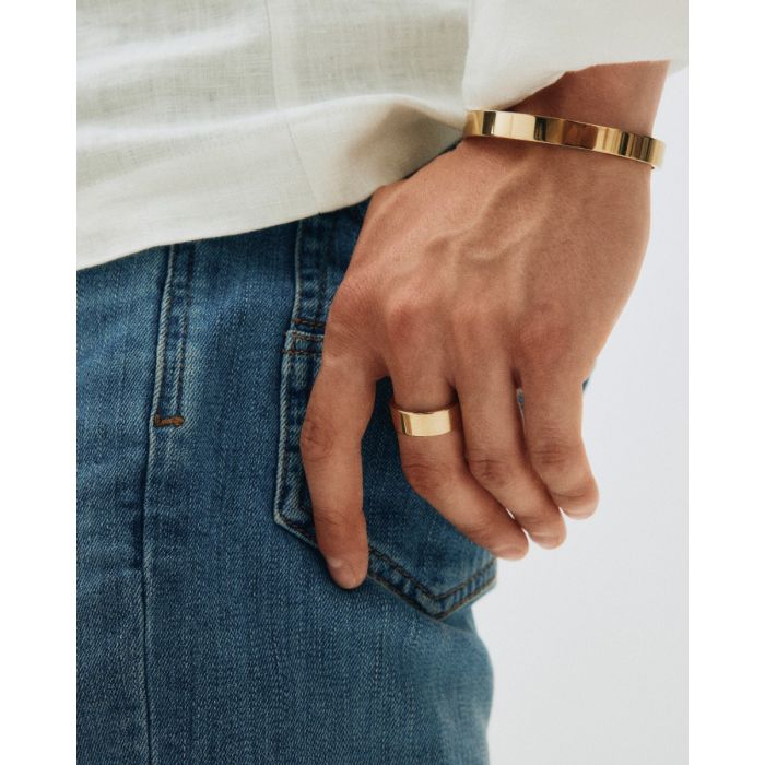 Ringen i vår serie Jesse är lite kraftigare i formen med ett minimalistisk och modernt uttryck. Bär som statementring eller ge bort som gåva till någon som gillar smycken som tar för sig. Här i 14K guldplätering. Matchar fint med seriens armband.