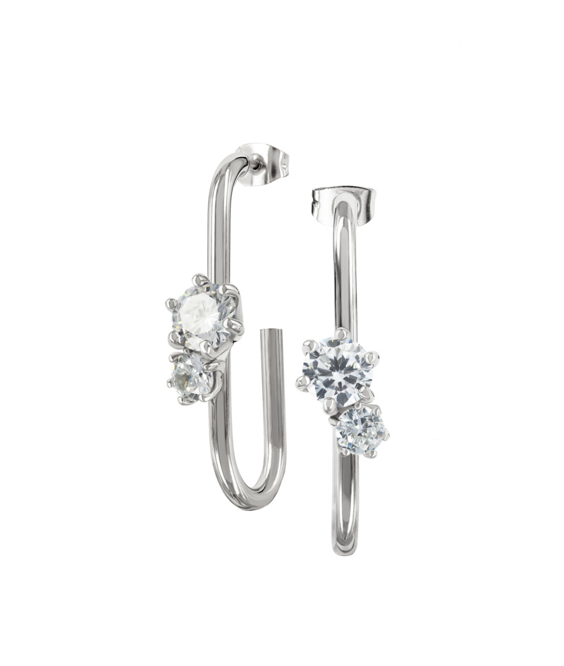 Julie långa stålörhängen på stift dekorerade med två vackra kristaller av kubisk zirkonia.