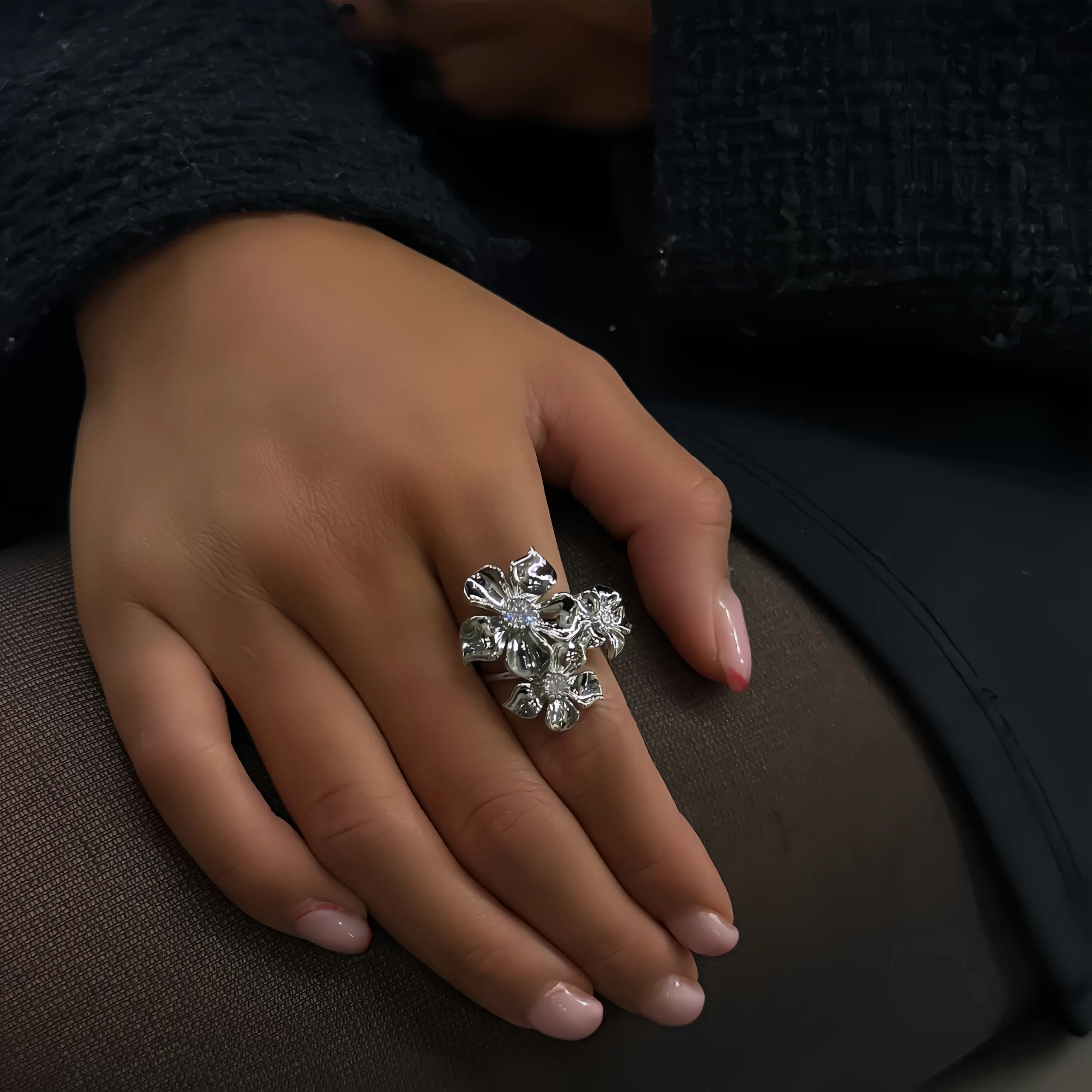 En populär ring med tre blommor som skapar en ljuvlig look.