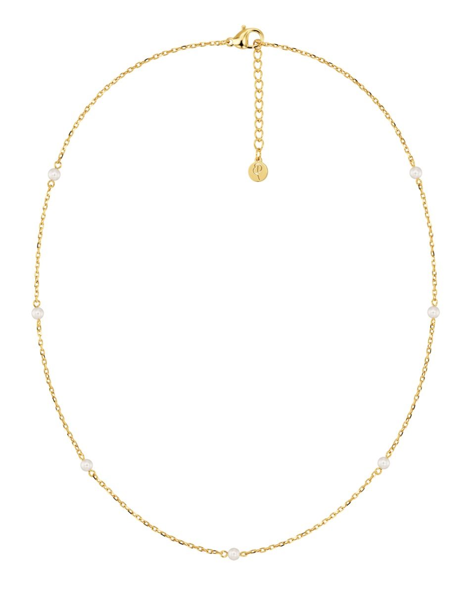 Det nättare halsbandet, här i 14K guldplätering, vilar vackert mot nyckelbenen. Snyggt att bära i layers med andra favorithalsband och tillsammans med seriens shoulder dusters.