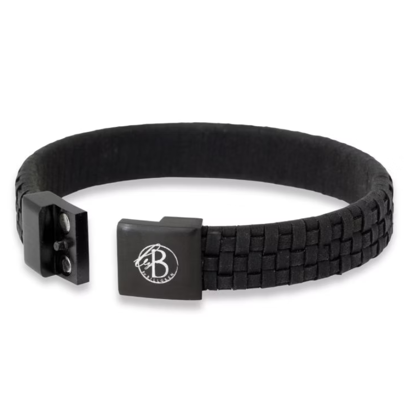 Loke, stilrent handflätat läderarmband med ett svart magnetlås.