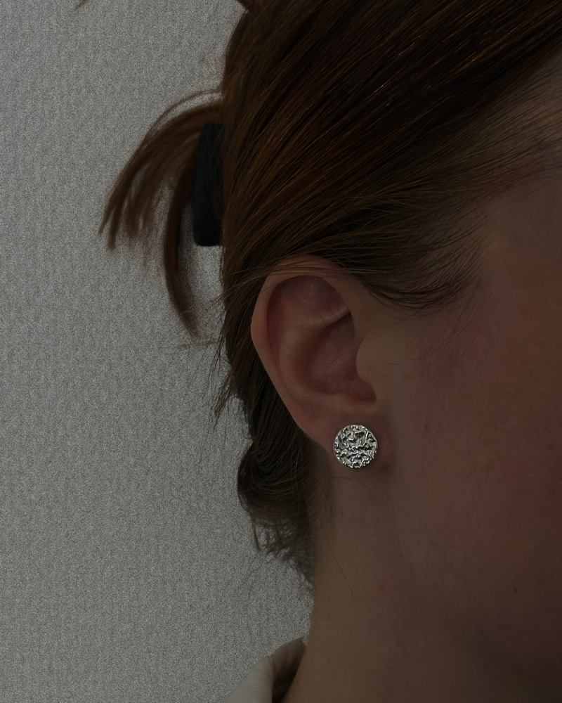 Stålörhängen på stift med en hamrad yta med blank finish.