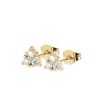 Nätta guldpläterade stålörhängen av 3 små kloinfattade klara cubic zirkonia kristaller.
