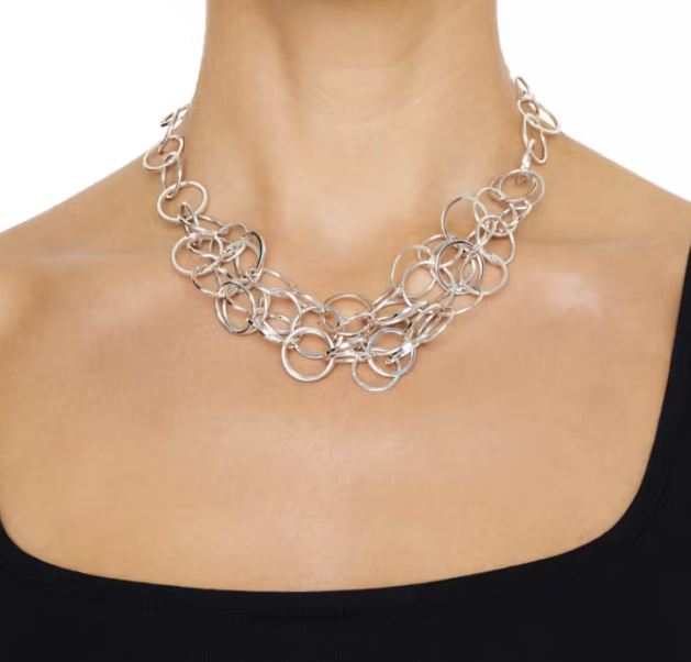 Messy collier i silver i ett vackert virrvarr av ringar, matcha med armband och örhängen.