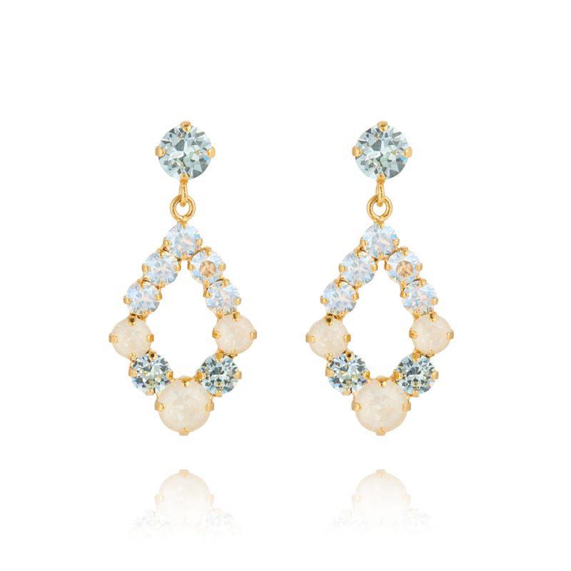 Droppformade örhängen med runda glittrande kristaller i olika nyanser ger varje kvinna den vardagliga glamour de behöver.