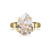 Justerbar ring i guldpläterad mässing med en droppformad klar kristallsten.