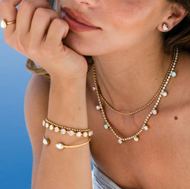 Caroline Svedbom är en svensk smyckesdesigner som skapar lekfulla färgglada smycken perfekta för fest och äventyr eller för att göra vardagen lite mer färgglad. Caroline Svedboms halsband, armband, örhängen och ringar är gjorda i mässing och pläterade med rhodium och 18k guld. Stenarna är äkta kristallstenar i olika färger som glittrar ikapp med solen. Smyckena finns ofta i olika storlekar av samma modell från statement pieces till den minsta som kallas drop.