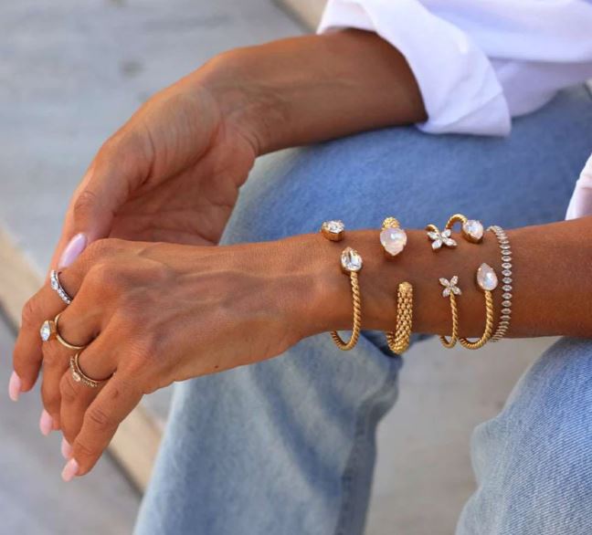Navette elegant mässingarmband med glittrande kristallstenar som ger den perfekta mängden glam till din outfit.