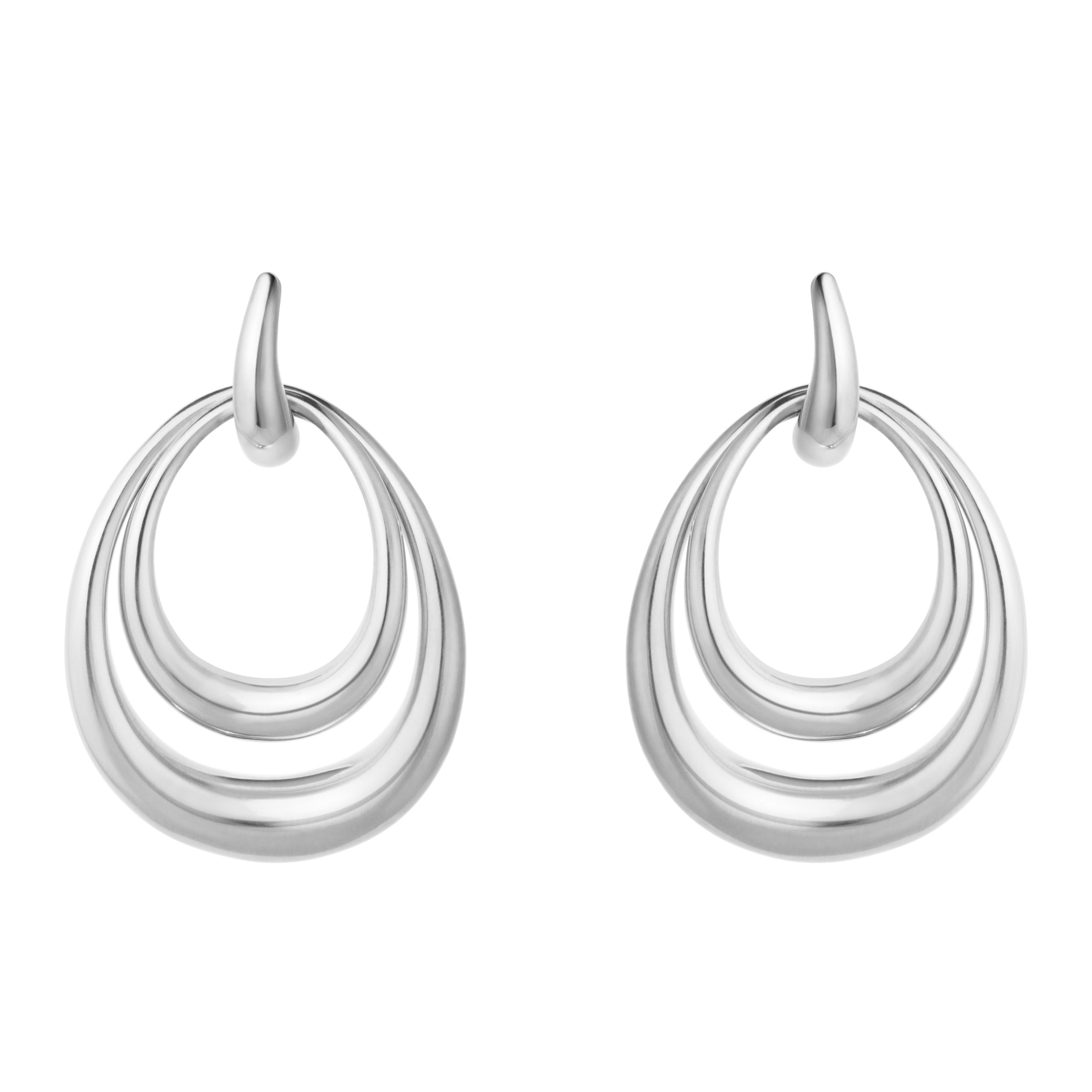 De här eleganta örhängena i sterlingsilver är designade för att bäras på olika sätt. I örhängena hänger två avtagbara ringar med Offspring-kollektionens organiska signaturform, som kan kombineras lager på lager eller bäras var för sig.