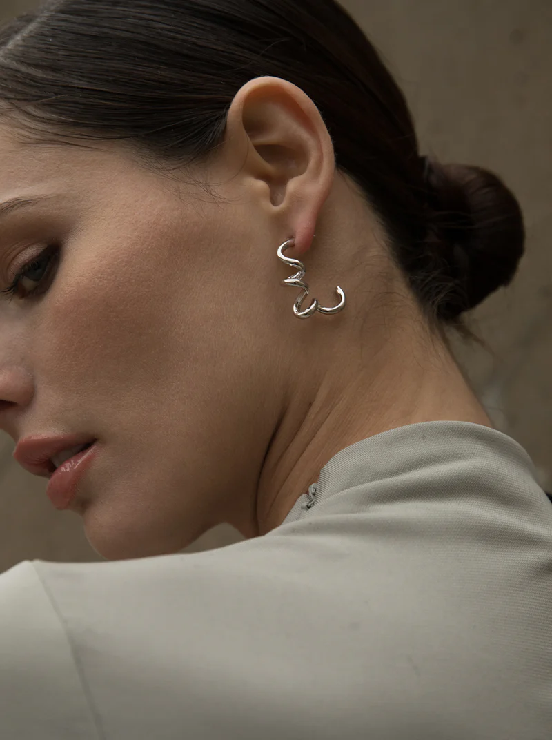 Originella örhängen i sterlingsilver med en ringdesign i form av en korkskruv. Perfekta för att göra intryck.