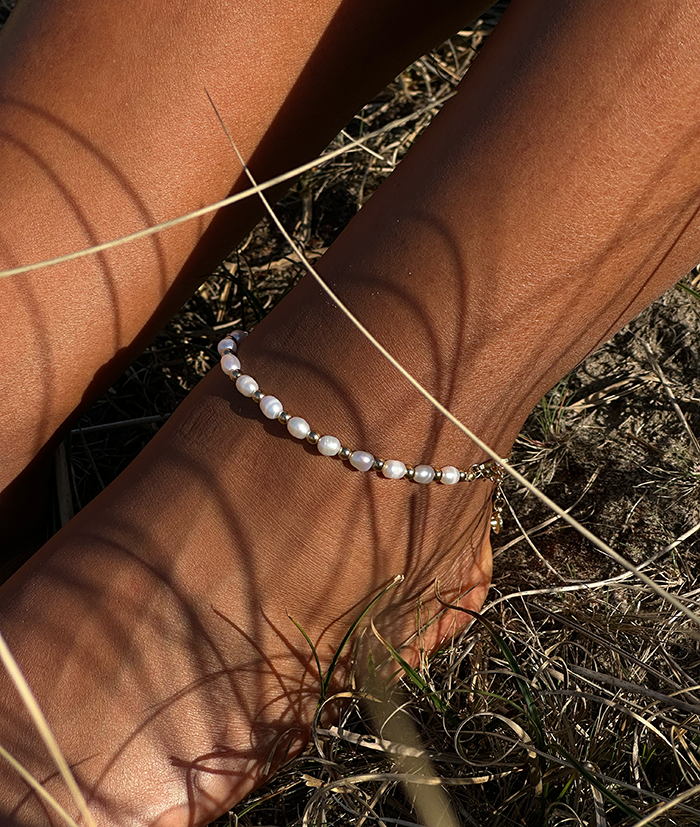 Fotlänk av äkta sötvattenspärlor mixade med kulor i stål.