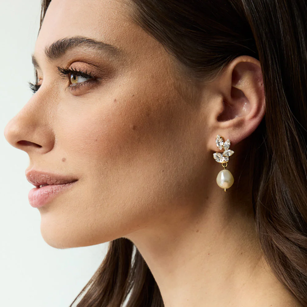 Caroline Svedbom Bridal - Mässingsörhängen Pearls of Promise Crystal