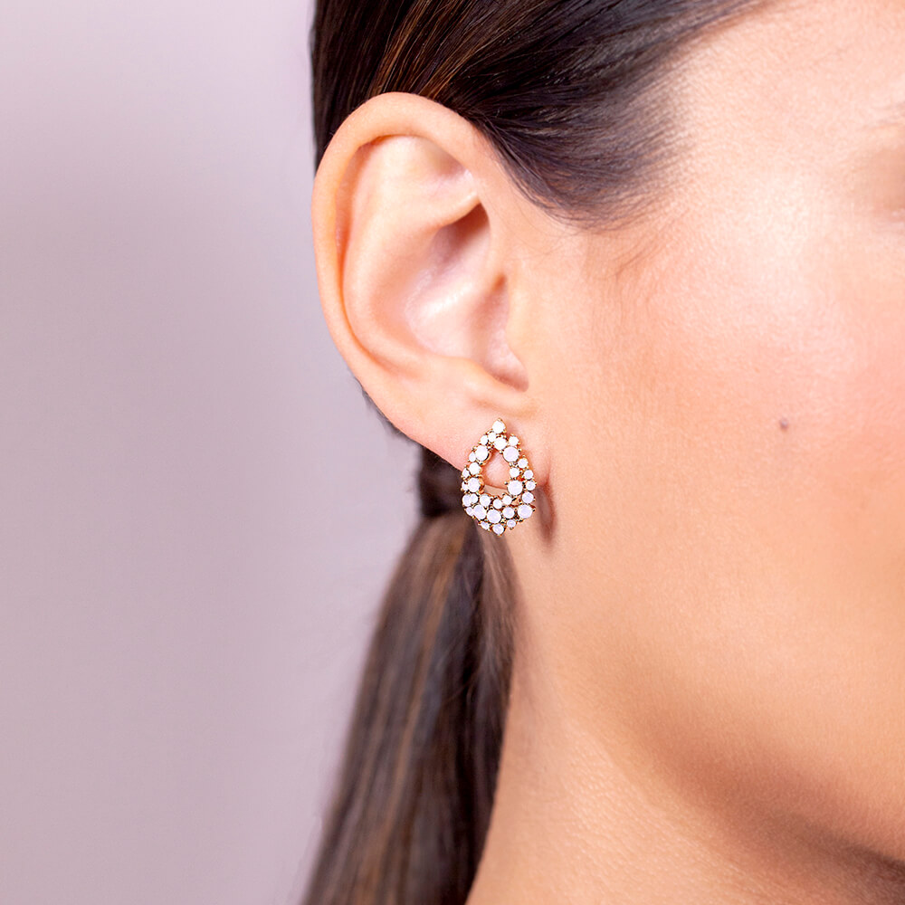 Petite Alice-örhängen, har flerfacetterade Swarovski-kristaller som reflekterar ljuset vackert. Infattade i guld, tillför de en diskret elegans till vardagslooken men kan även passa perfekt för festliga event.