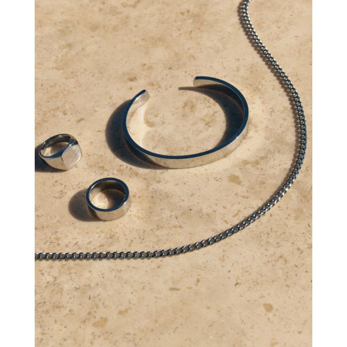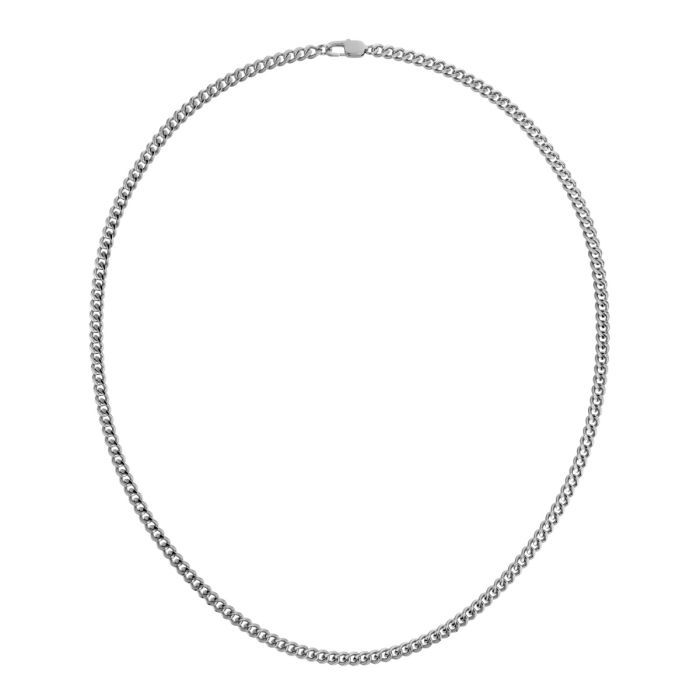 Halsbandet i serien Riley är en kraftig pansarkedja, här i blankt rostfritt stål. Lika snyggt att bära i lager tillsammans med andra favorithalsband som för sig, och en uppskattad gåva. Snyggt att kombinera med seriens armband. 50cm